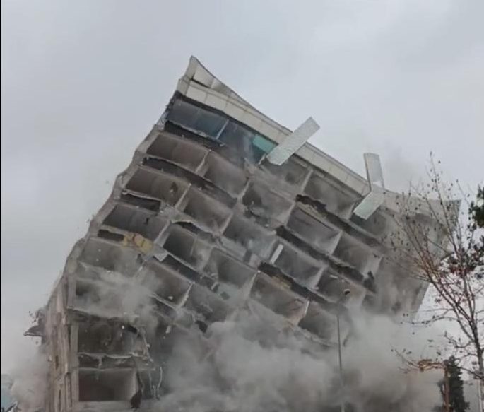 PİRHA-Adıyaman’da deprem sonrası ağır hasarlı binaların yıkımı sırasında çıkan toz nedeniyle şehir kirli bir havaya büründü. Taşeron firmaların kurallara uymaması tepki çekiyor.