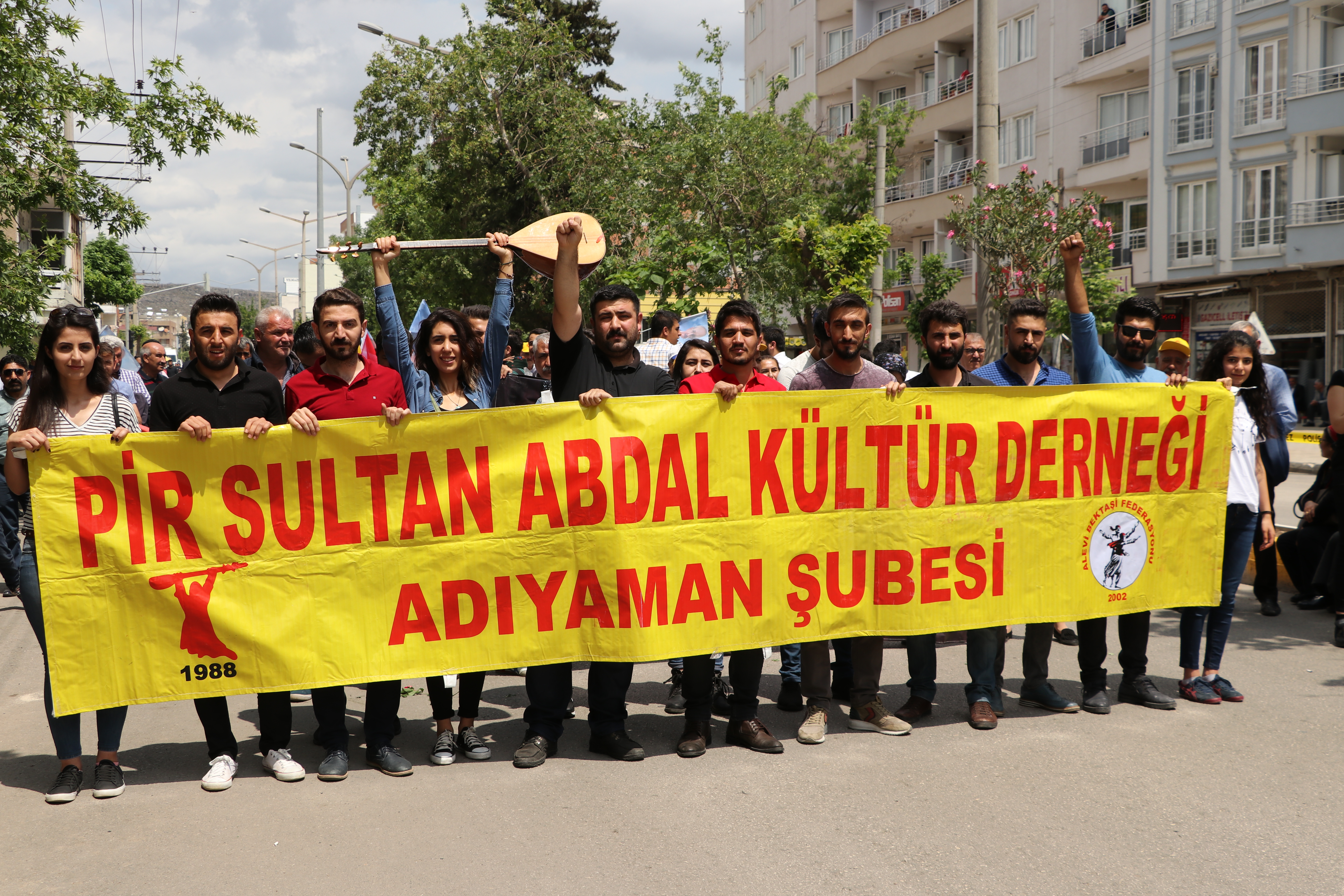 Adıyaman Emek ve Demokrasi Platformu öncülüğünde İtfaiye Meydanında toplanan emekçiler, “Demokrasi, eşitlik, adalet, barış ve kardeşlik” pankartı açarak, “Biji yek Gulan” “Faşizme karşı omuz omuza” “Sivas’ın ışığı sönmeyecek” “Direne direne kazanacağız” sloganları atarak yürüyüşe geçti.