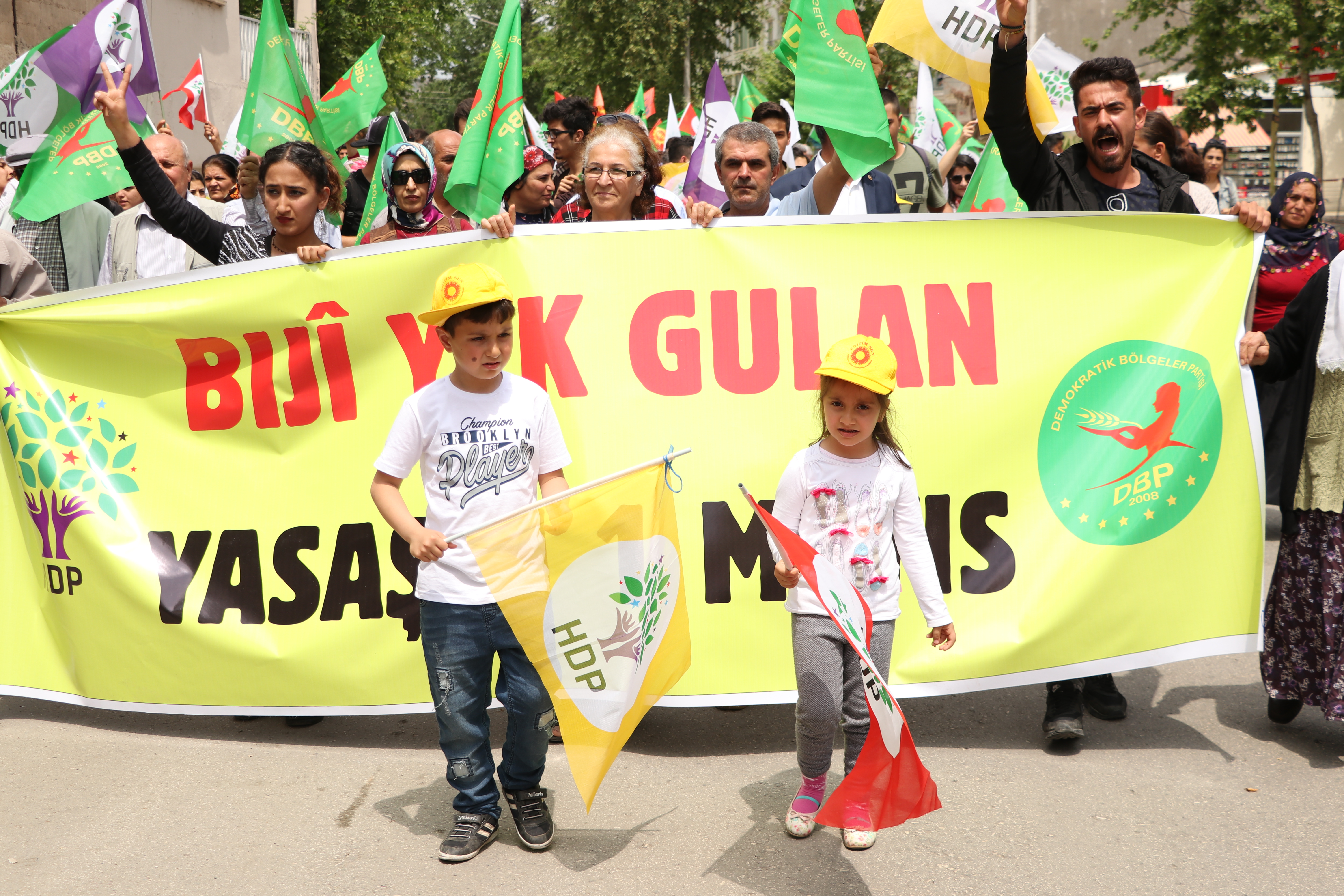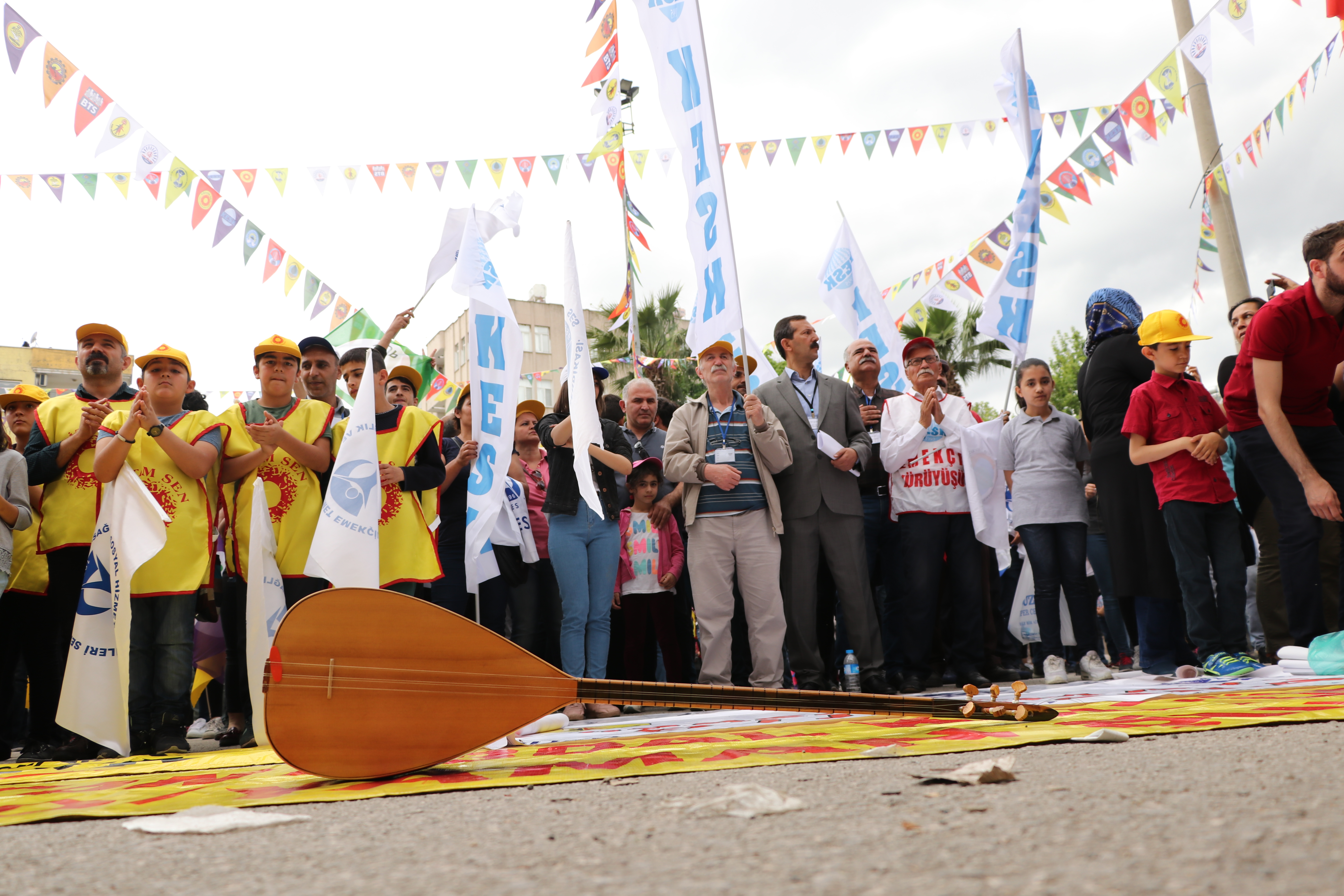 Mustafa Yücel Özbilgin Parkı yanında bulunan miting alanına gelen emekçiler, kurulan polis arama noktalarından geçerek sloganlarla ve zılgıtlarla alana giriş yaptı. Mitingde kadınların ve gençlerin yoğun katılımı gözden kaçmazken kadınların giydiği yöresel kıyafetler miting alanında renkli görüntüler oluşturdu.