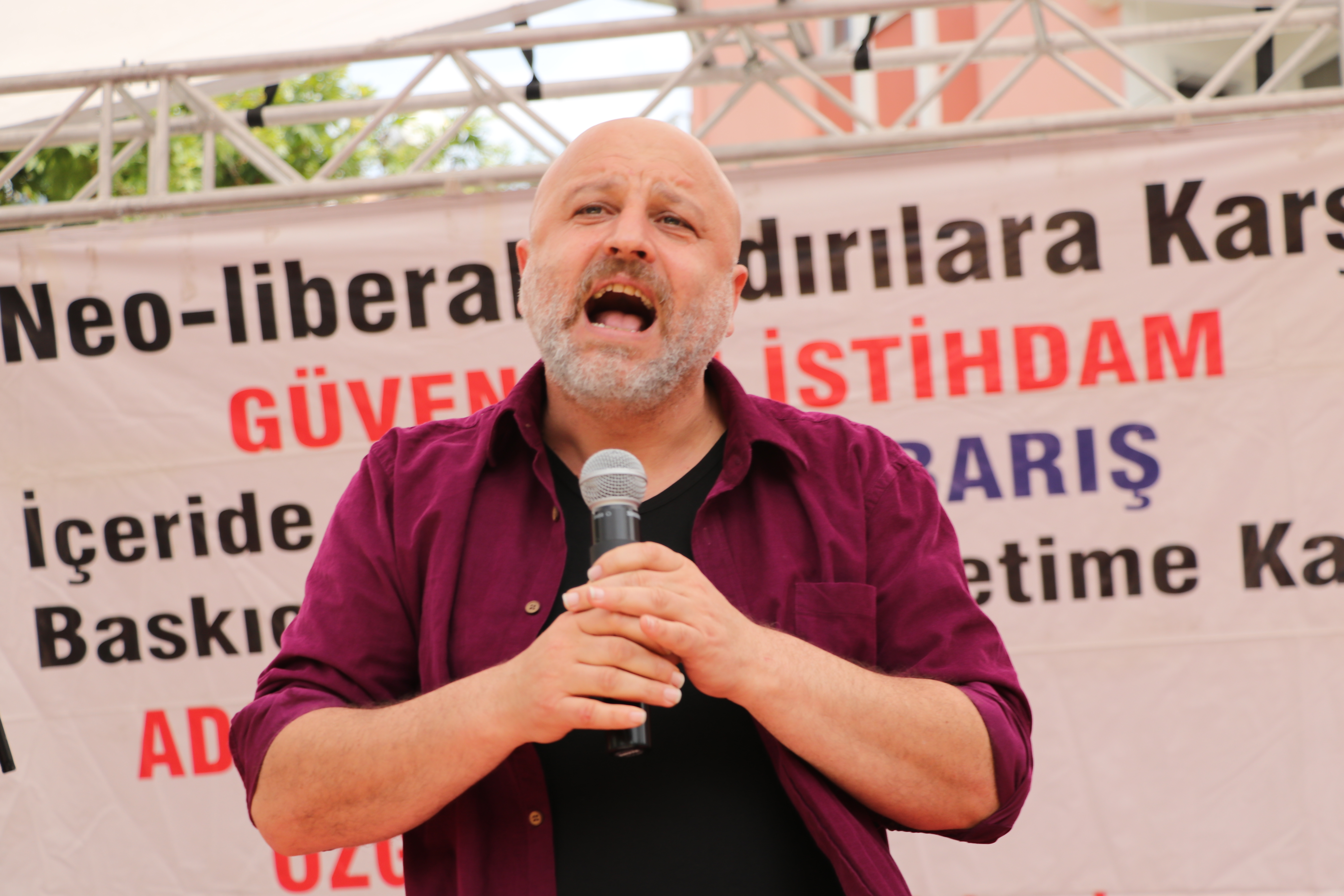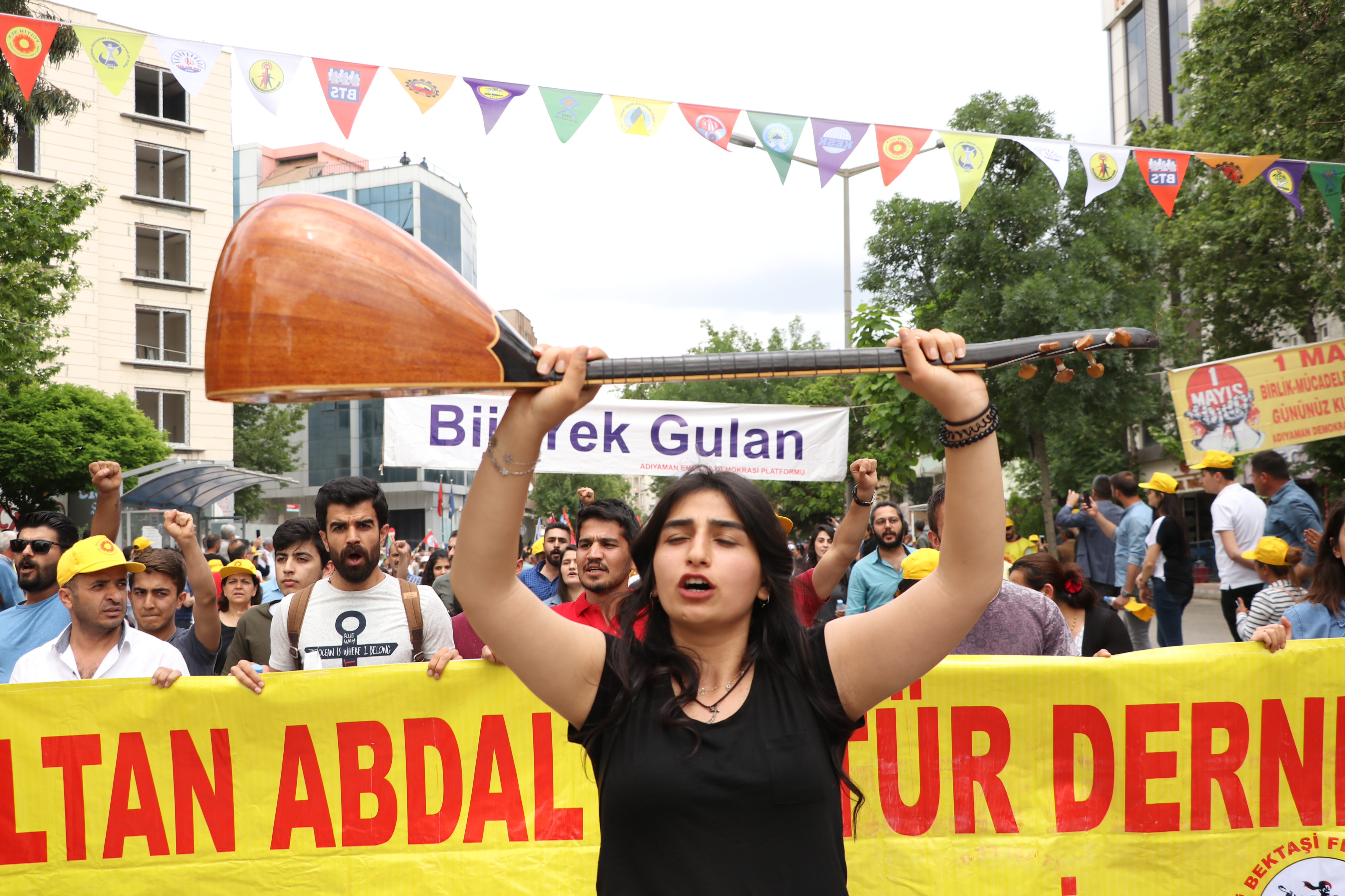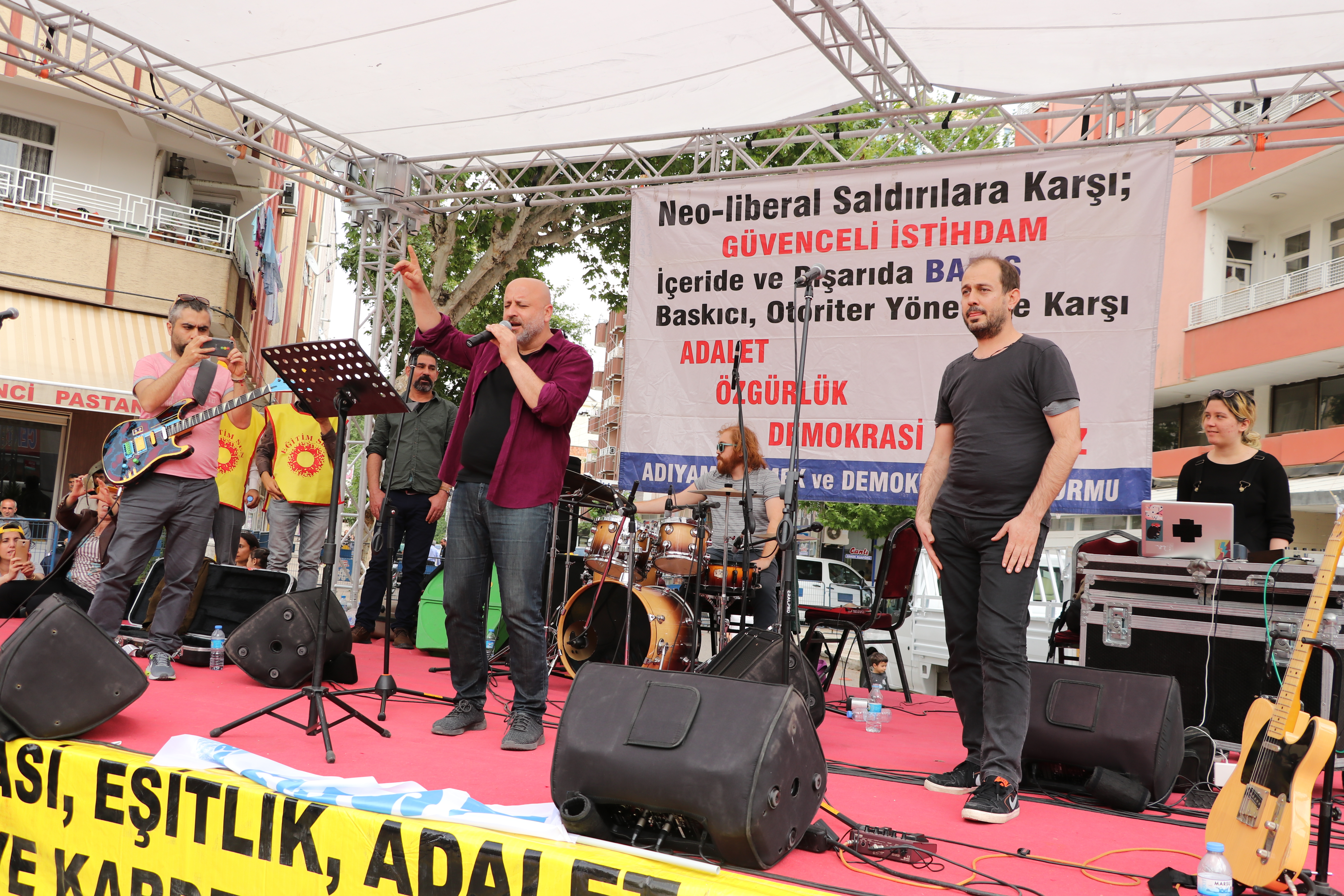 “Kaybedecek vakti, yitirilecek geleceği olmayan mücadele azmi sönmeyen güzel günler için 1 Mayıs alanlarına akın eden, OHAL’siz bir ortamda, eşit, özgür, adil, laik ve demokratik bir gelecek hedefleyenler hepiniz hoş geldiniz” diyerek konuşmasına başlayan BES Adıyaman İl Temsilcisi Şahin Binicier, “AKP iktidarının iflas ettiği politikaların en mağdur ettiği şehir Adıyaman. Adıyamanlıların yıllardır ürettiği atasından miras kalmış tütün AKP iktidarında yasaklanmıştır.Tütün satışı yapanlar ise Temmuz ayı itibari ile 6 yılla kadar hapis cezası ile cezalandırılacaklardır. Bu zulümdür, bu ihanettir, bu emeğe saygısızlıktır, bu emperyalist güçlere tekellere hizmettir” ifadelerini kullandı.