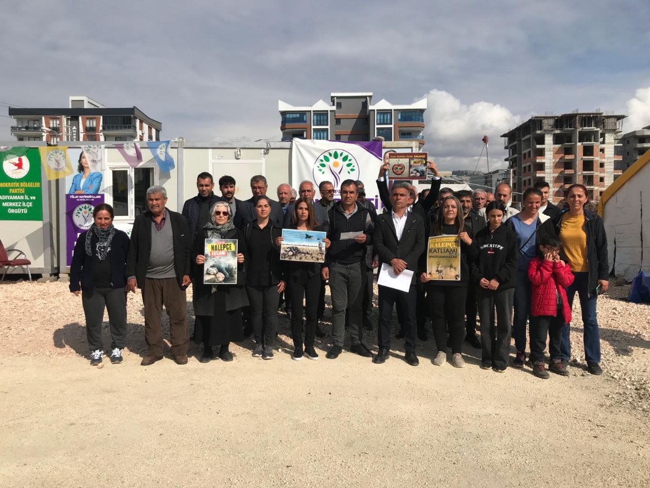 PİRHA-DEM Parti Adıyaman İl Yönetimi, Halepçe Soykırımı’na yönelik basın açıklaması yaptı. Okunan metinde “Baskı ve şiddet yöntemleriyle demokrasi, özgürlük ve eşitlik mücadeleleri bir süre bastırılabilir, belki geriletilebilir, ancak engellenemez. AKP iktidarının yakın coğrafya ve tarihten alması gereken en önemli ders budur” denildi.