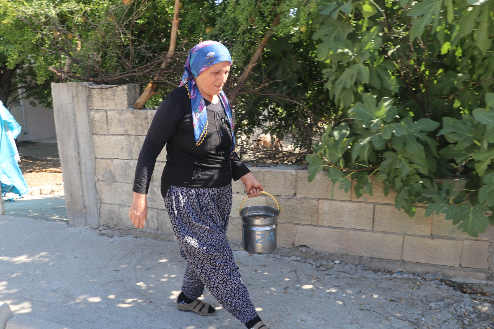 Nurey Kakız’ın lokmasını tattıktan sonra hemen bitişikteki eve geçiyoruz. Elinde Aşure dolu bir sitil ile Fatma Cengiz ile karşılaşıyoruz. Pişirdiği Aşure ile orucunu açtıktan sonra elinde Aşure dolu bir sitil ile geziyor. Lokmasını komşularıyla pay ediyor.
