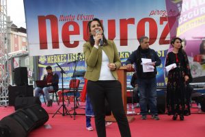 Yıldırımın Konuşmasından sonra söz alan HDP PM üyesi Çilem Küçükkeleş konuştu. Küçükkeleş, halkı Türkçe, Kürtçe selamlayarak HDP olarak “Bir hırka bir lokma felsefesiyle” geldiklerini belirtti. Bu coğrafyada halkların dimdik ayakta Newroz’unu kutlamaya devam ettiğini ifade eden Küçükkeleş, kadınların mücadele alanındaki önemine değinerek şunları belirtti: