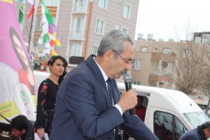 HDP Milletvekili Behçet Yıldırım kadınlar, gençler ve aileleri selamlayarak konuşmasına başladı. Halkın yanı sıra HDP Eş Genel başkanları başta olmak üzere tüm siyasi tutukluların Newroz bayramını kutladığını belirten Yıldırım,”Newroz bizim direniş geleneğimizdir. Halkın umudu zalim Dehak’ların büyük korkusudur. Newroz’u yasaklamaya çalışanlara karşı Nexruz’un büyük direniş ruhu kazanacaktır. Siz ve katı zihniyetiniz gidecek ancak Newroz bu topraklarda sonsuza denk kutlanacaktır. AKP bugün tek bir şey baskı ve zulüm ile ayakta kalmaya çalışıyor. Biz güçlüyüz halkçı ve çoğulcuyuz, ancak onlar tekçi anlayışta olduklarından kaynaklı kaybetmeye mahkûmdurlar. Vekillerimizi parlamentodan çıkarta bilirler, ancak bizleri sizlerin gönlünde çıkarmaya güçleri yetmeyecektir” diye konuştu.