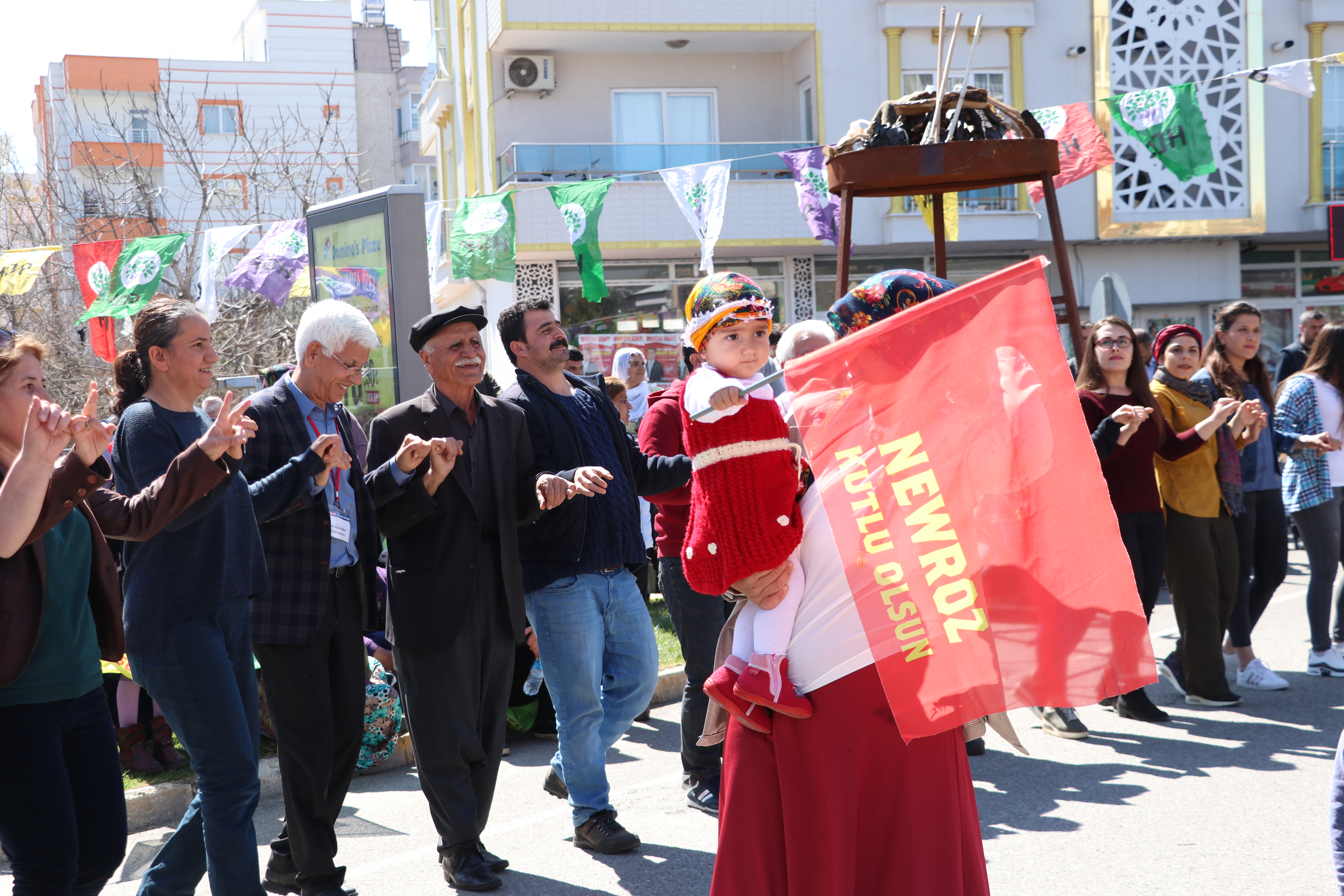 Çok zorlu bir süreçten geçildiğine vurgu yapan Erdoğmuş, “Nasıl ki baharın gelişini Newroz müjdeliyorsa, yemyeşil olmanın, yeniden hayat bulmanın kainatta yeni bir hayatla buluşmanın önüne geçmek mümkün değilse; özgürlüğün, eşitliğin barışın da bu Newroz’un içinde saklı olduğuna ismimiz gibi eminiz” diye konuştu.