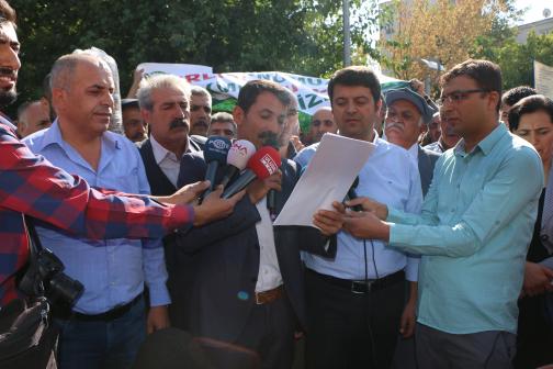 Demokrasi Parkı’nda toplanan kitle adına basın açıklamasını okuyan Gözebaşı Köyü Muhtarı Şevket Alagöz, “Tütün bu kentin en büyük geçim kaynağıdır. Binlerce aile tütünle uğraşıyor. Adıyaman tütününe getirilecek olan yasaklama bu aileleri ve on binlerce kişiyi açlığa mahkum etmektir” dedi.