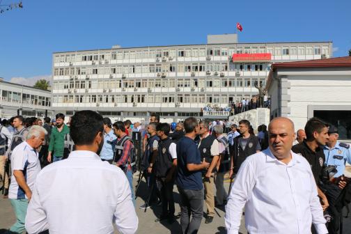 Daha sonra kitle dağılırken, çevik kuvvetin AKP il binası önünde bekleyişi sürüyor.