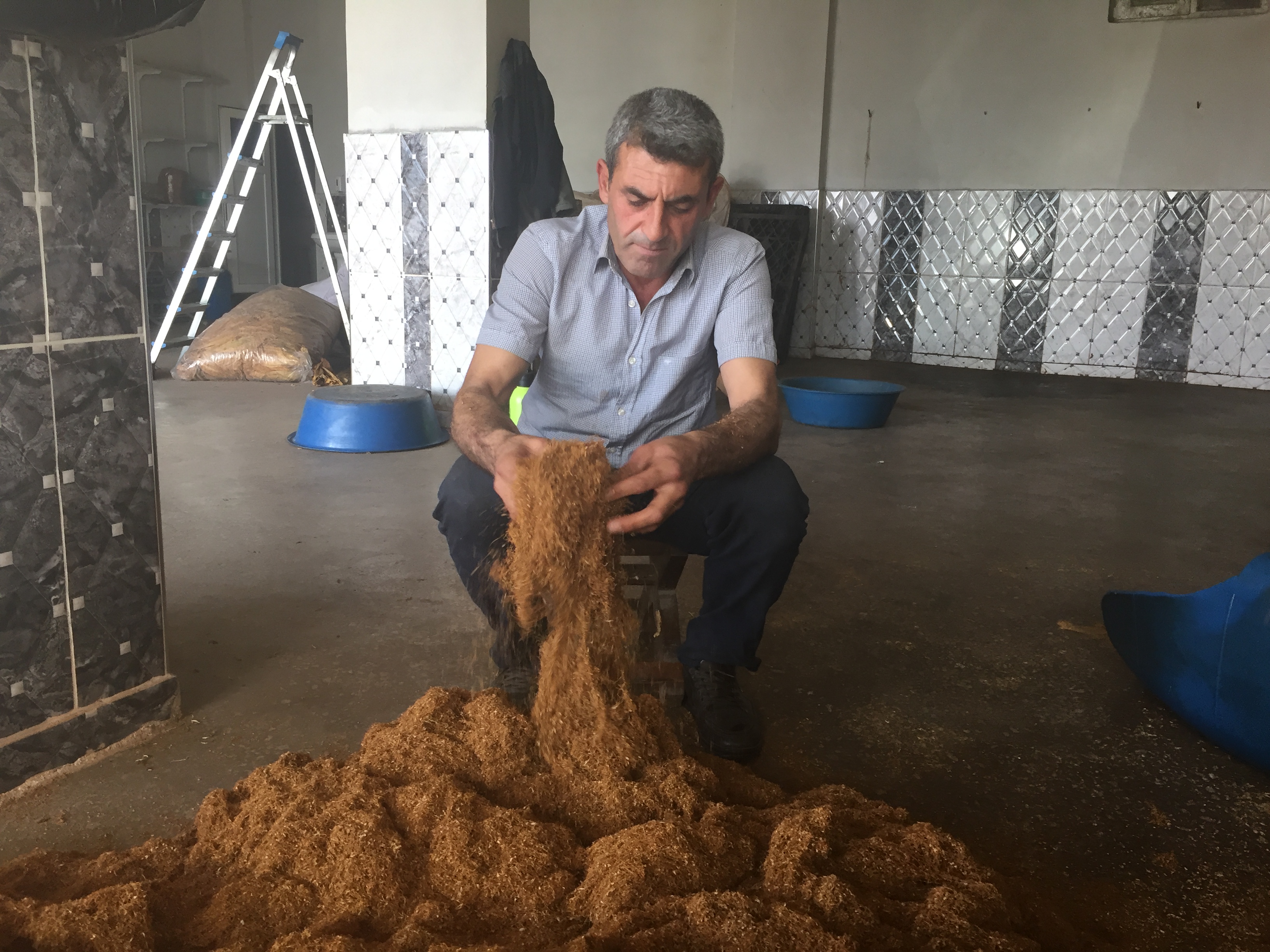 Dört çocuk babası olan 48 yaşındaki Gaffari Aslan, “Benim ne tarlam ne de bir bahçem var. Tek geçim kaynağım tütün. Eğer tütüne bir düzenleme gelmezse çocuklarımı okutacak ve evimin ihtiyacını karşılamayacak duruma gelirim” dedi. Aslan, “Küçük arazilerimiz var. Burada ancak tütün ekerek geçimimizi sağlıyoruz. Eğer tütün kalkarsa çocuklarımızı okuldan almak zorunda kalacağız. Çocuklarımız okumayacak ve büyük sıkıntılar yaşayacak. Tütün yasası çıkmadan önce durumumuz iyiydi. Okul başlayınca çocuklarımızın eğitim ihtiyaçlarını bundan karşılıyorduk. Ama bu sene tütünlerimizi satamadığımız için şehirde okuyan çocuklarıma harçlık bile gönderemiyorum. Bu benim ailemin alınteri, tütünün önünün açılması gerekiyor. Böyle devam ederse açlığa sefalete ve yoksulluğa mahkum kalacağız” dedi.
