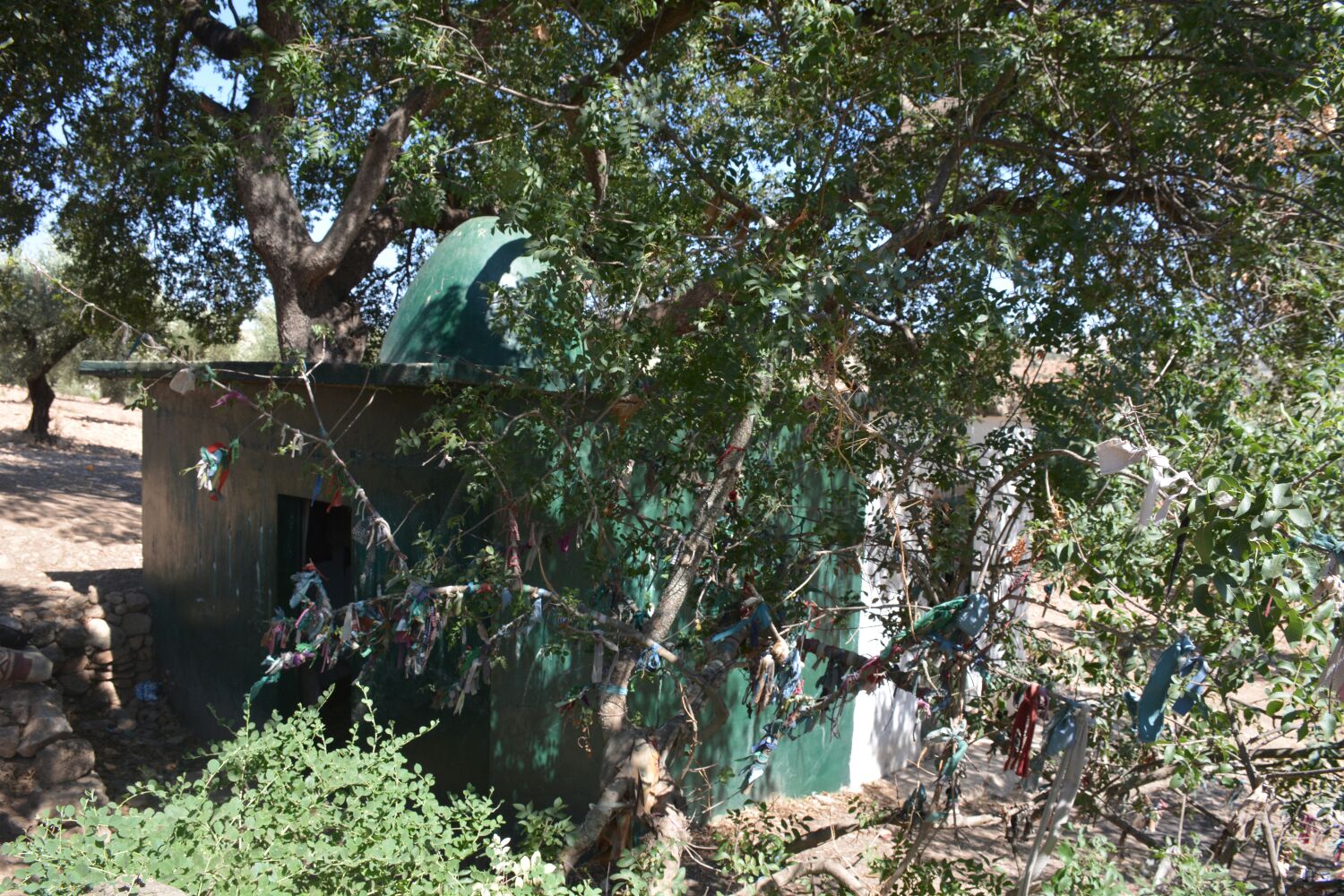 Kapıdan içeri girerken orada bulunan meşe ve zeytin ağaçlarından yapılan küçük kazık haline getirdikleri dal parçaları yere çakılıyor. Bu da dileklerin tutması için yapılan bir ritüel. Türbenin etrafında üç dört tane yüz yıllık meşe ağaçları  bulunuyor. Ağaçlardan biri türbenin üzerini tamamen dalları ile kaplamış durumda. Bir ağacın dalları dilek çaputları ile donatılmış. Bu ağaçları kesmek ise yasak. Zira ağaç kesen kişinin iflah olmayacağına inanılıyor. Bu meşe ağaçlarının dikkat çeken bir yanıda yörede sadece tek türbe etrafında bulunması. Bu yerleşkede başka bir alanda meşe ağacı bulunmuyor. Binanın hemen önünde çok eski zamanlarda yapılmış bir su kuyusu bulunuyor. Bu kuyudan hem içmek, hemde yemek yapmak için su ihtiyaçlarını karşılıyorlar.