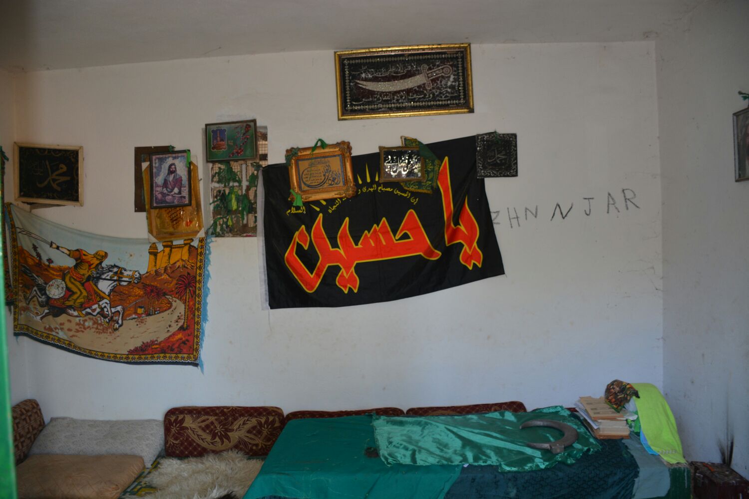 Türbenin içerisinde mezarla birlikte Alevi inancının temelleri olan Hz.Ali ve diğer Alevi kutsallarının resim ve tasvirleri bulunuyor. Bu resimler arasında  Hz. Ali ve 12 imamlar, Hacı Bektaş-ı Veli,  Hz. Ali’nin Hayber önlerinde olduğunu tasvir eden resim, ayrıca  Arapça bir bez üzerine yazılmış  Hz. Hüseyin yazısı ve Zülfikar  resmi bulunuyor.