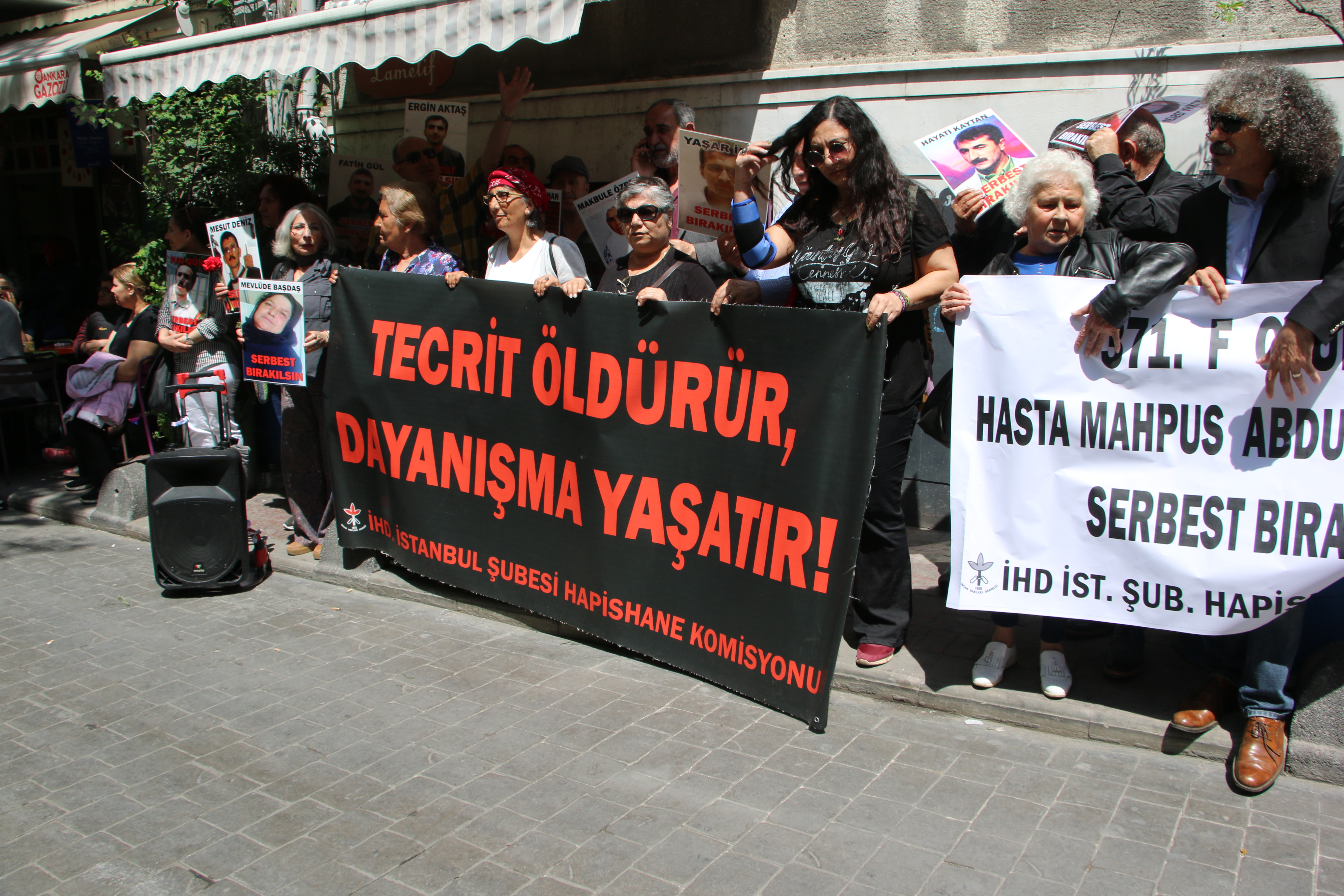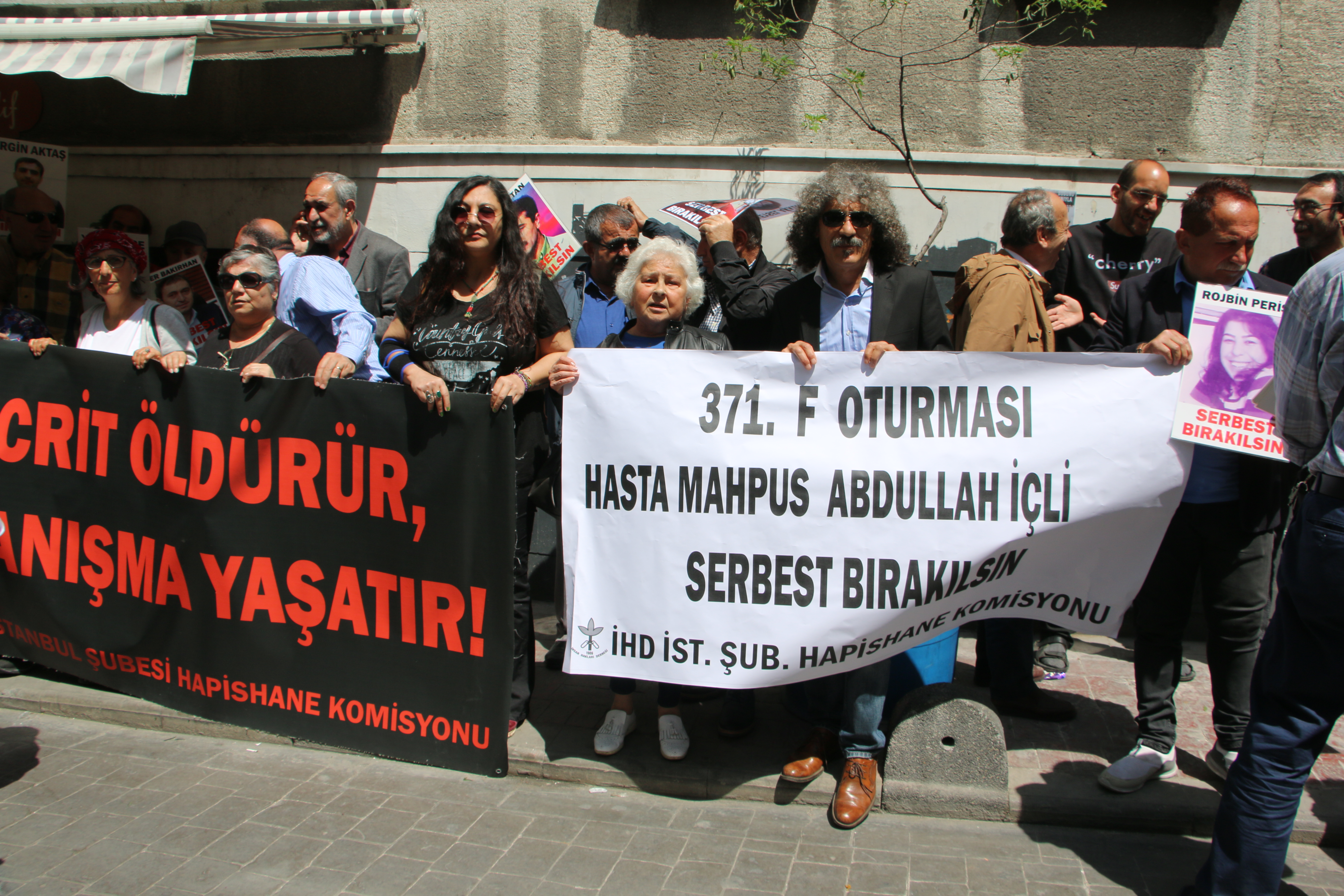 İnsan Hakları Derneği (İHD) İstanbul Şubesi’nin cezaevinde yaşanan hak ihlallerine ve hasta mahpusların durumlarına dikkat çekmek amacıyla düzenlediği F Oturması eyleminin bu hafta 371’incisi düzenlendi. Bu haftaki eylemde kalp ve yüksek tansiyona bağlı hayati tehlikesi bulunan hasta mahpus Abdullah İçli’nin durumuna dikkat çekildi.