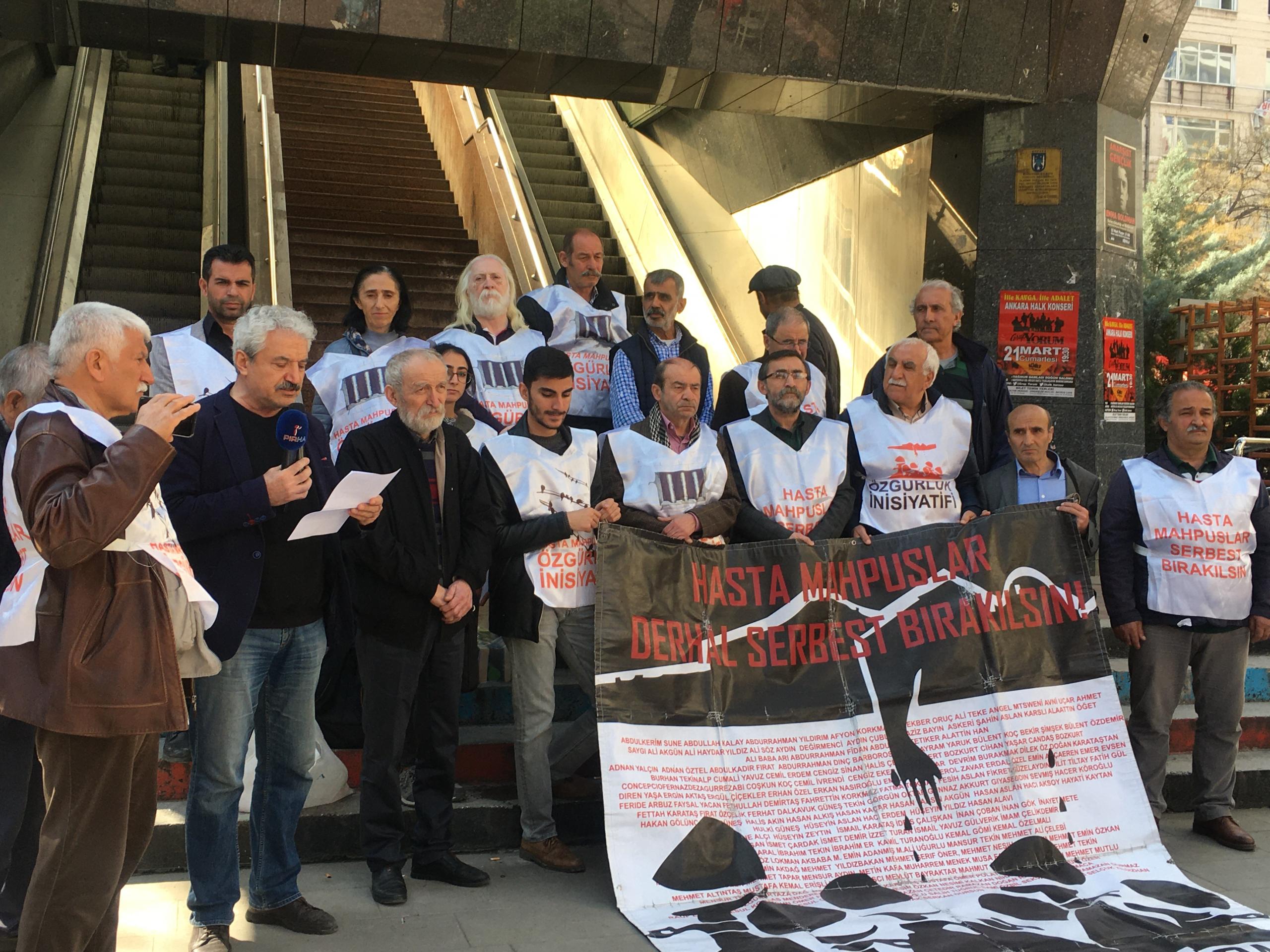 İnsan Hakları Derneği Ankara Şubesi önünde yapılan açıklamaya İHD üyeleri, hasta mahpus yakınları ve çok sayıda yurttaş katıldı.