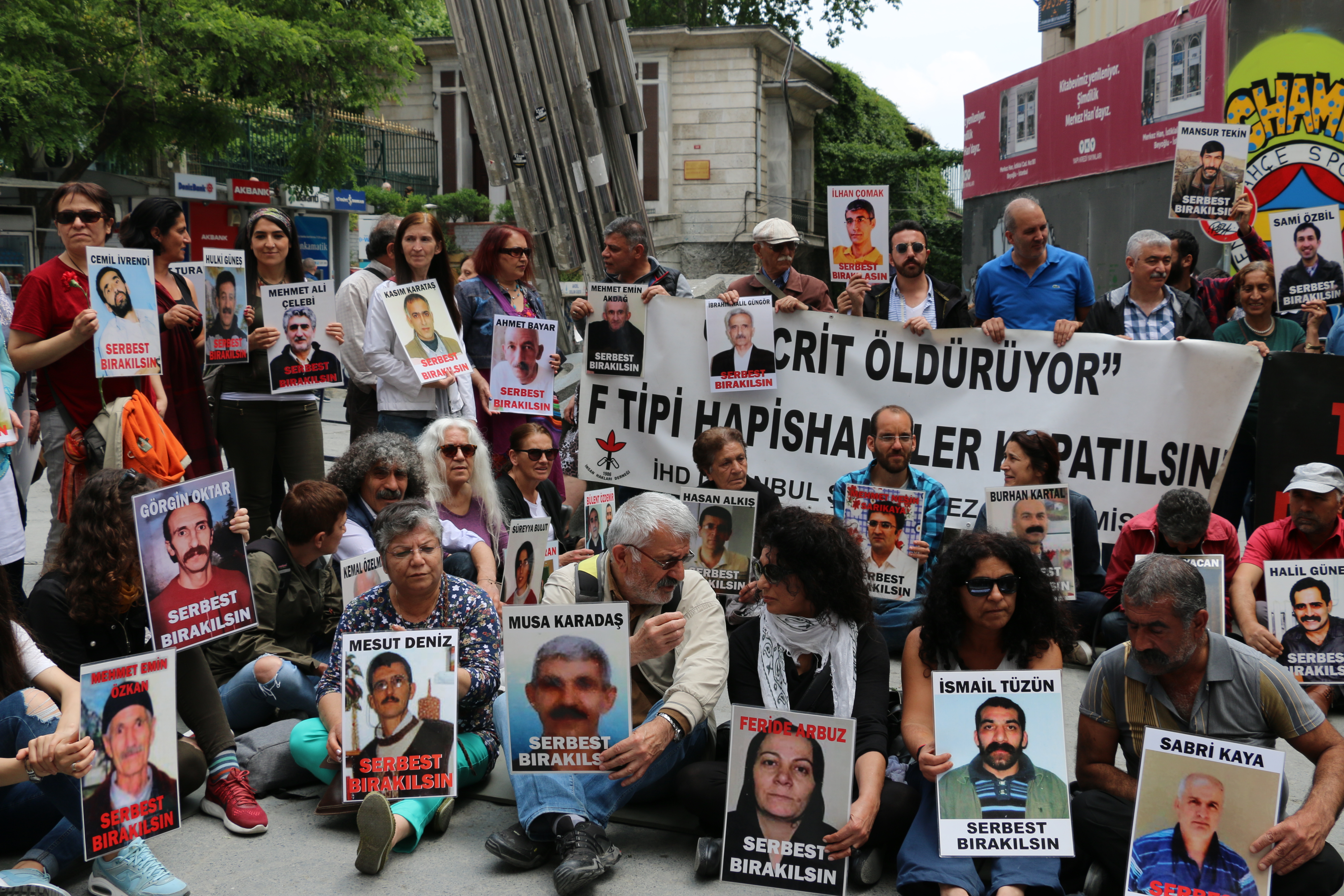 İnsan Hakları Derneği (İHD) İstanbul Şubesi Hapishane Komisyonu üyeleri, hasta tutukluların durumuna dikkat çekmek amacıyla her hafta gerçekleştirdikleri “F Oturumu”nun 270’incisi için Galatasaray Meydanı’nda bir araya geldi. Eylemde, “Tecrit öldürür F Tipi Hapishaneler kapatılsın”, “Tecrit öldürür dayanışma yaşatır” ve “Hasta mahpuslar serbest bırakılsın” yazılı pankartları ile hasta tutukluların fotoğrafları taşındı. Oturma eyleminde sık sık, “Tedavi haktır engellenemez”, “İnsan haklarıyla insandır”, “OHAL işkencesine son” ve “Devrim Ayık serbest bırakılsın” sloganları atıldı. Bu hafta Özgür Halk Dergisi çalışanı iken tutuklanan crohn hastası (kronik ve iltihabi bağırsak hastalığı) Devrim Ayık’ın durumuna dikkat çekildi. Bu haftanın açıklamasını İHD aktivistlerinden Taylan Bekin yaptı.