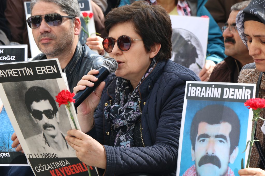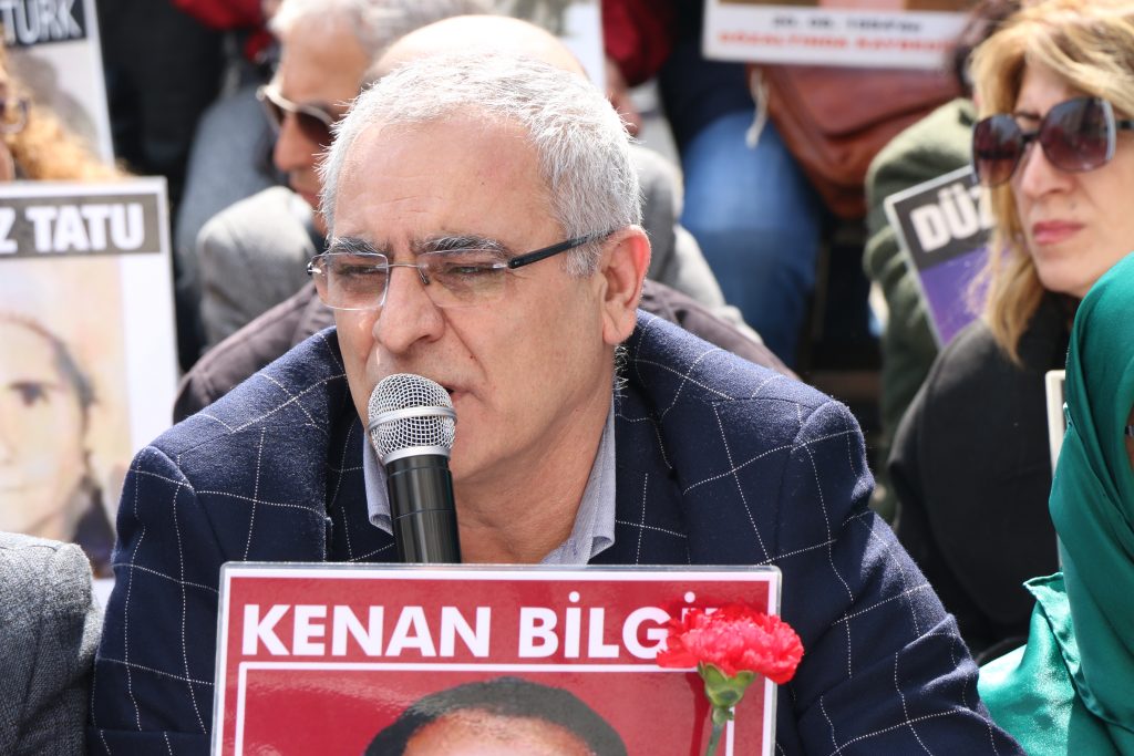 “Kayıplarımızın cesetlerini bile vermeyen bu katillerden hesap sormak için buradayız” diyen gözaltında kaybedilen Kenan Bilgin’in abisi İrfan Bilgin, “Bu kayıp dosyalarımızı defalarca sunmamıza rağmen herhangi bir işlem yapılmadı. Şimdi kalkıp ‘dosyalar zaman aşımına uğradı’ diyorlar. Dosyalar işlem görmeden kapatıldı. Dosyaları kapatmasanız ne olacak, bu adalet sisteminizle, o korkunç adalet saraylarınızdan adalet mi çıkacak? Sizi teşhir etmek için, sorgusuz sualsiz gözaltına alınanlar ve yaşam hakkı ellerinden alınanlar için, bunu insanlara duyurmak için burada oturuyoruz” dedi.