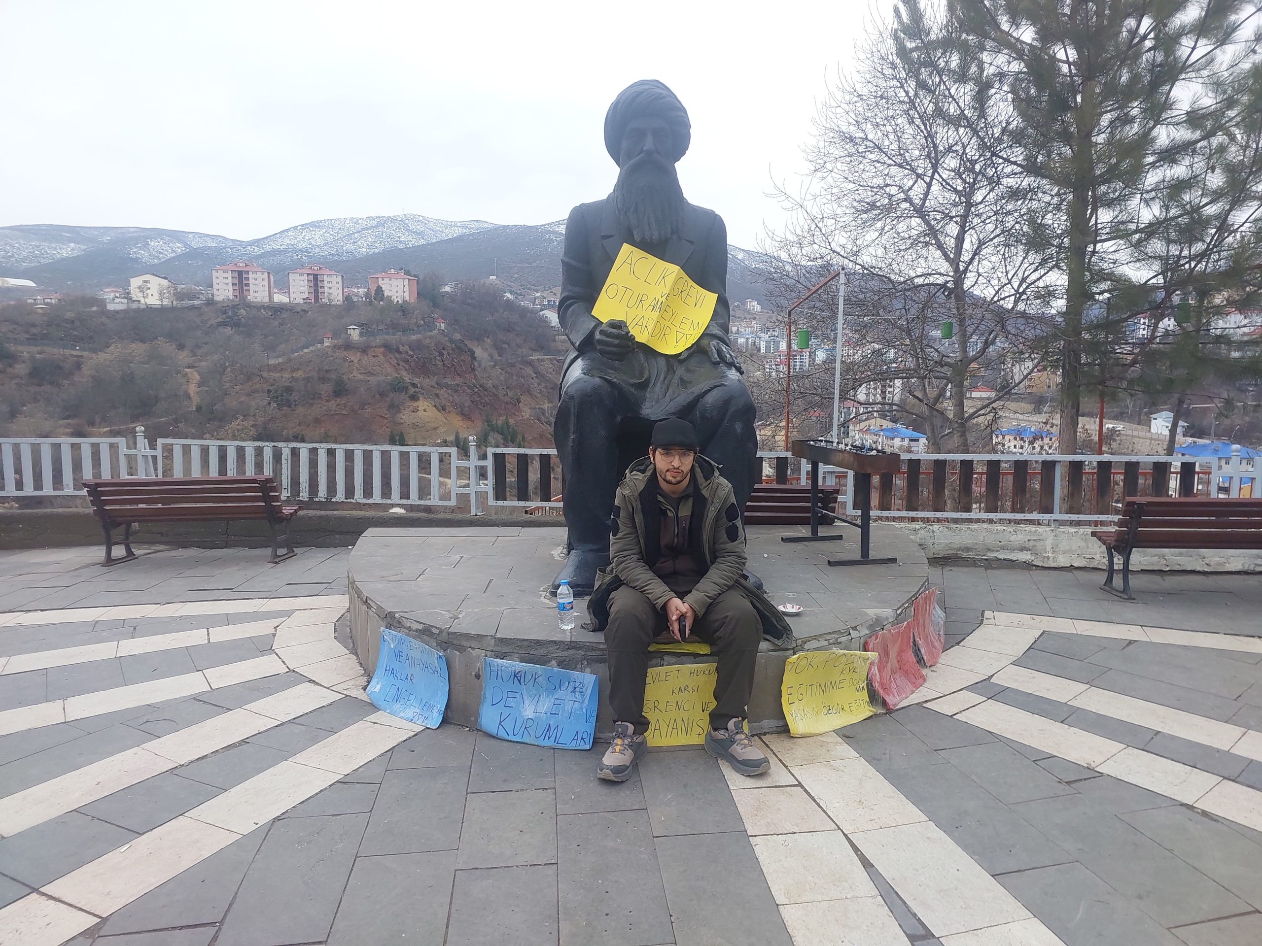 PİRHA-Kaldığı yurttan 1 ay uzaklaştırma cezası alan Munzur Üniversitesi öğrencisi Ahmet Yıldız, Seyit Rıza Meydanı’nda başlattığı oturma eylemini ve açlık grevi 8. gününde devam etti. Açlık grevine son verdiğini belirten Yıldız, “Hem yerel halktan, Dersim’deki ve diğer illerdeki üniversite gençliğinden desteğinin olmaması nedeniyle bugün açlık grevine son verme kararı aldım” dedi.