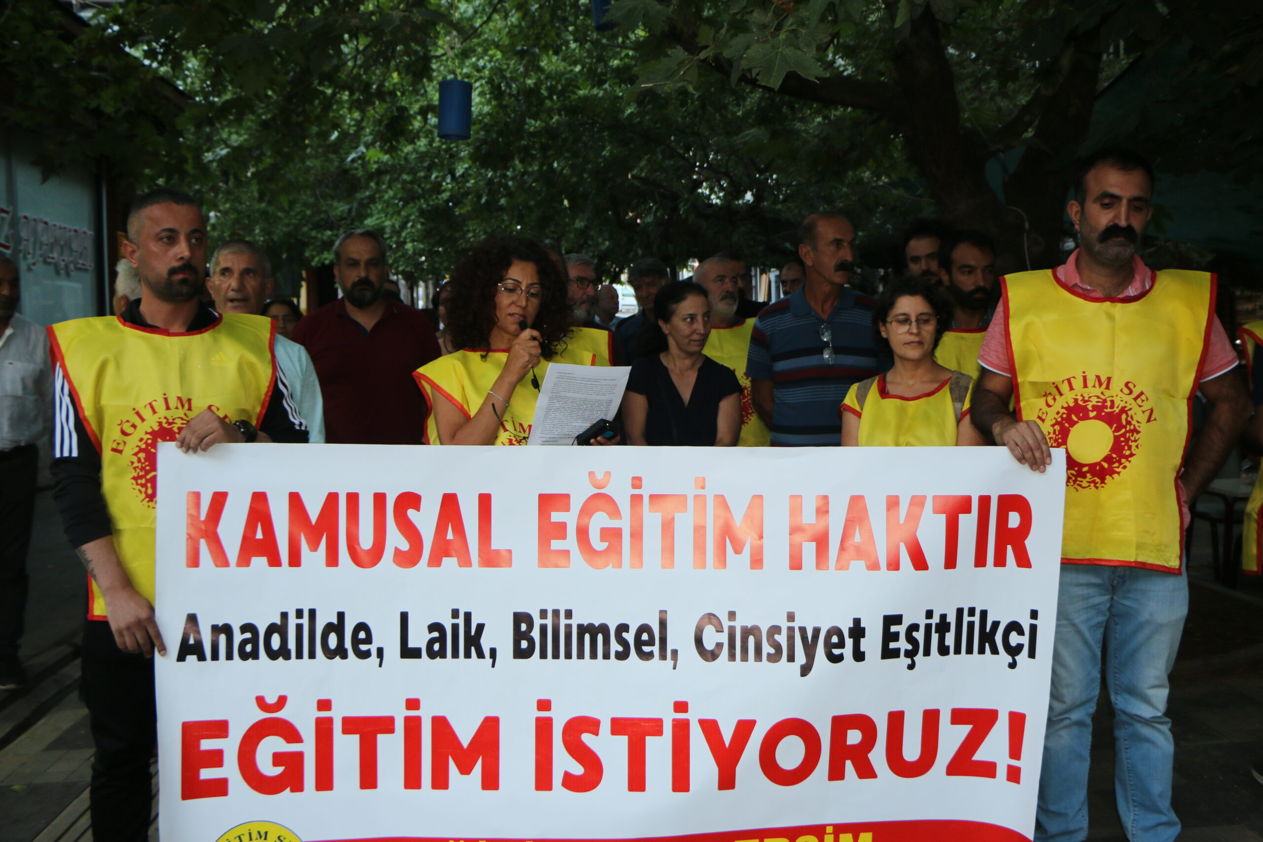 Türkiye’de eğitimin bilimsel ve laik bir içeriğe sahip olmadığını vurgulayan Turan, “Din ve vicdan özgürlüğünün tanımı açıkken, tek dinli yapıyı pekiştirme konusundaki ısrar sürmektedir. Türkiye, taraf olduğu Uluslararası Çocuk Hakları Sözleşmesi’ne aykırı hareket etmekte, AİHM’in son olarak Anayasa Mahkemesi’nin zorunlu din dersleri ile ilgili verdiği kararlar açık biçimde ihlal edilmektedir. Şehrimiz özelinde de bu durum Alevi çocukları üzerinden sürdürülmektedir. Alevi öğrencilere zorunlu din dersi dayatmaları din hürriyetine aykırılık teşkil etmektedir. Ayrıca yaşadığımız bölgede ana dilinde eğitim hakkı engellenmektedir. Ana dilde eğitim hakkı seçmeli derslere indirgenemez. İktidarın bu yöndeki samimiyeti Kurmanci ve Kırmancki öğretmen atamalarında ortaya çıkmaktadır. Her yıl yapılan öğretmen atamalarında bu iki branş birkaç kadro ile geçiştirilmekte asimilasyon bilinçli bir şekilde sürdürülmektedir” diye konuştu.