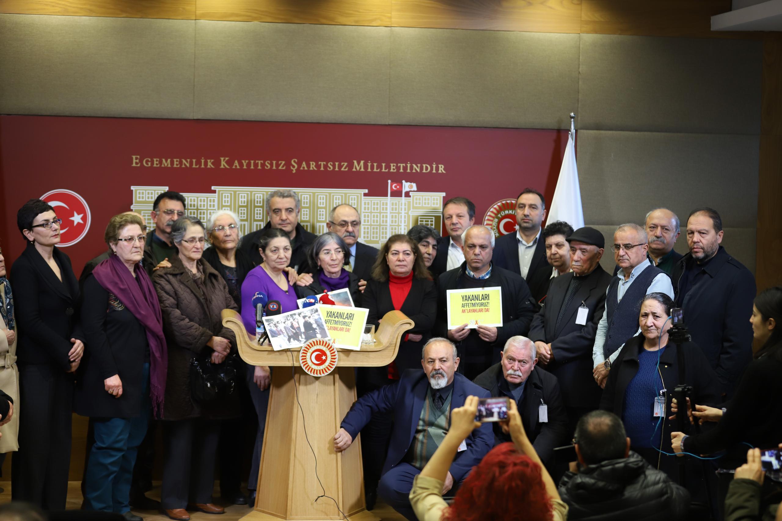 PİRHA- Sivas Katliamı’nda yaşamını yitiren canların aileleri, TBMM’de basın toplantısı yaptı. Milletvekilleri Zeynel Özen, Ali Kenanoğlu ve Avukat Şenal Sarıhan ve Alevi kurum temsilcilerinin de katıldığı toplantıda, Sivas Katliamı hükümlüsü Ahmet Turan Kılıç’ın Cumhurbaşkanı tarafından affedilmesine tepki gösterildi. Konuşmalarda, “Biz ne yakanları ne de onları aklayanları unutacağız, affedeceğiz. Bunun hesabını soracağız” denildi.