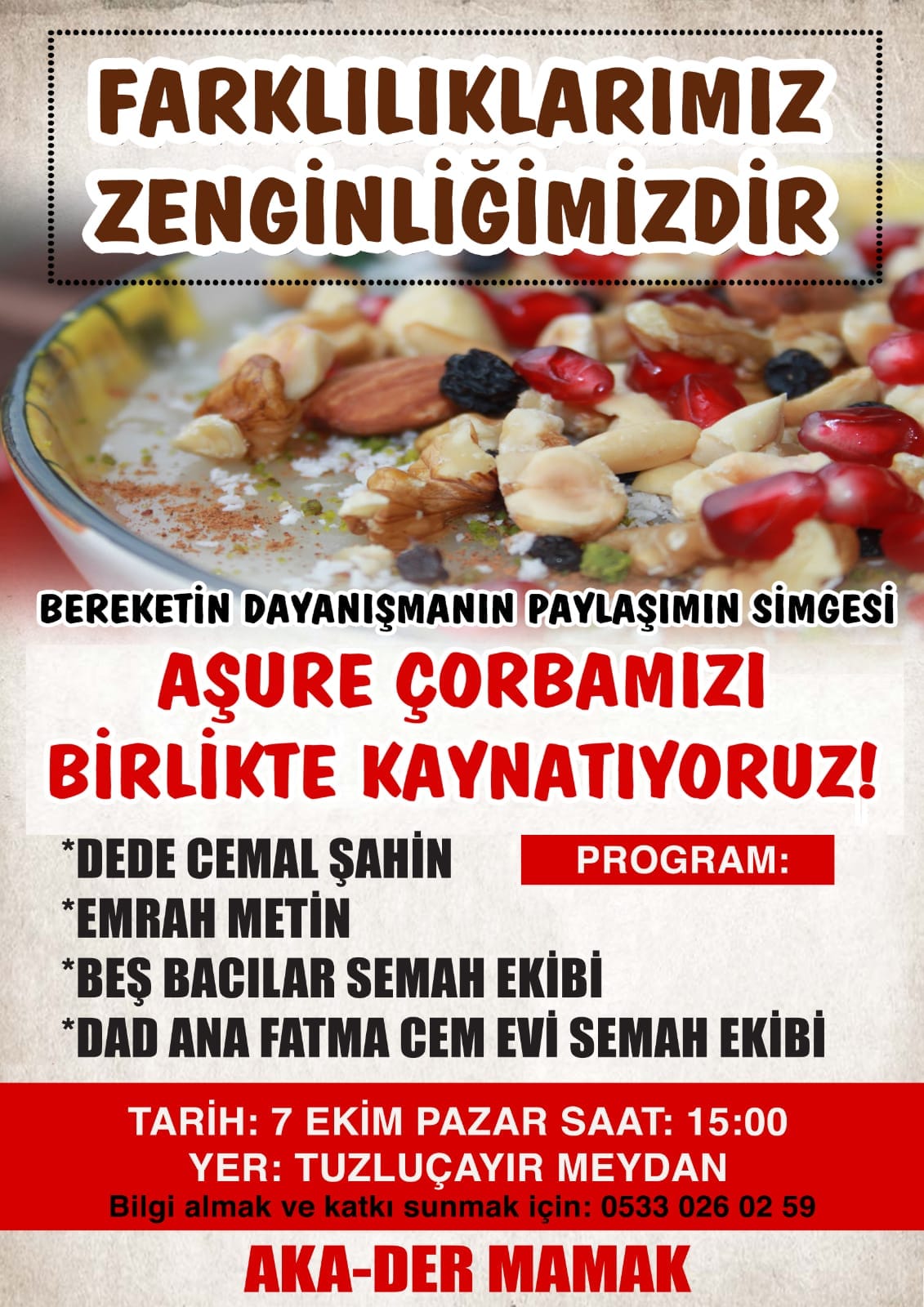 AKA-DER Mamak Şubesi, Tuzluçayır Meydanı’nda aşure lokması verdi. Dede Cemal Şahin, Emrah Metin, Beş Bacılar Semah Ekibi ve DAD Ana Fatma Cemevi Semah ekibi katılım gösterdiği lokmaya çok sayıda yurttaş katıldı.