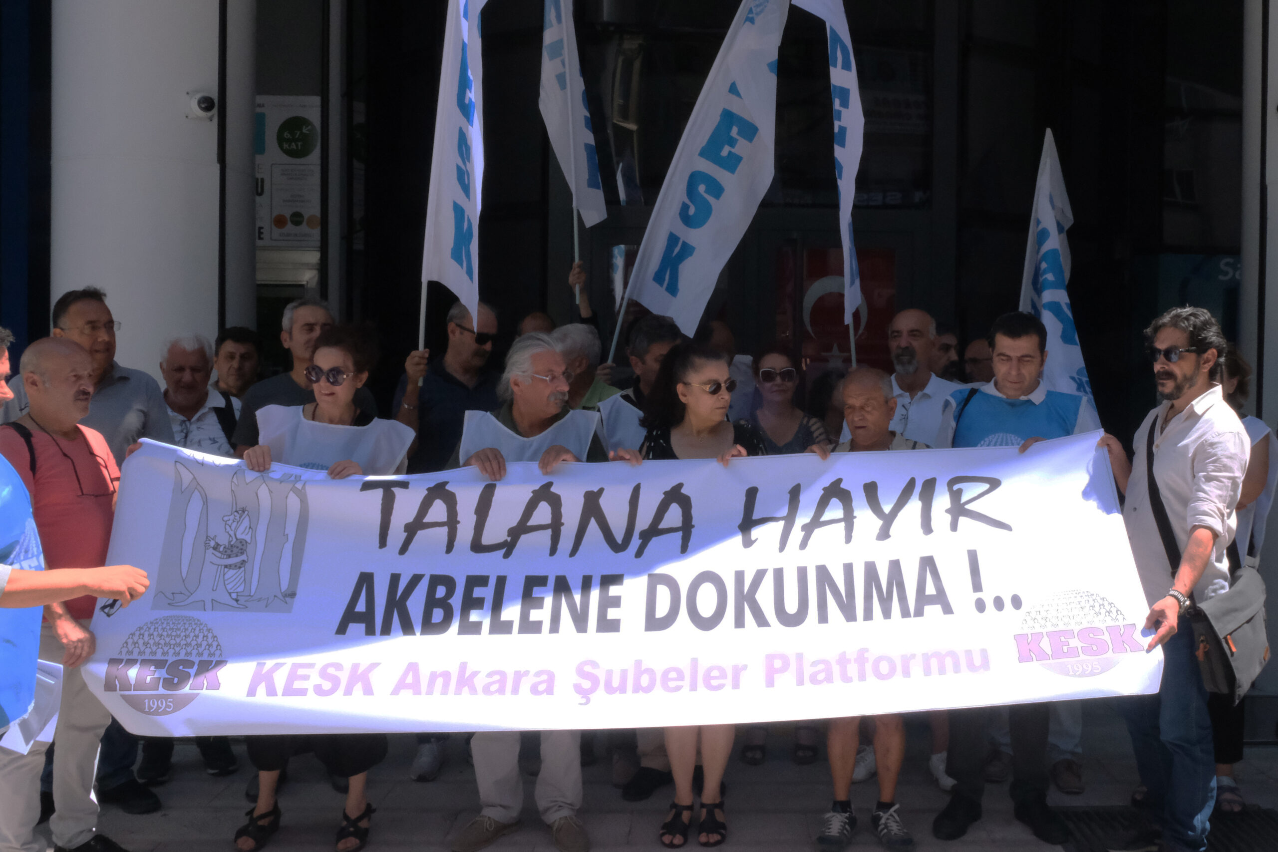 PİRHA-KESK Ankara Şubeler Platformu, “Akbelen’de ağaç kesimini durdurun” talebi ile basın açıklaması yaptı. AKP İktidarının çevre politikasını eleştiren KESK’liler, “Şirketlerle el ele veren iktidar, doğadaki tüm kaynakları sonsuz bir şekilde tüketebileceğini, ranta dönüştürebileceğini varsayıyor ve buna göre hareket ediyor” denildi.