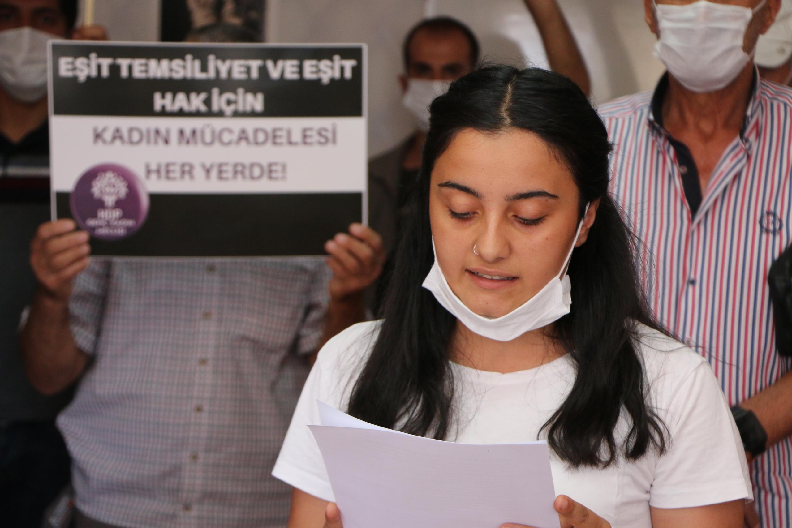 HDP ve bileşenleri kadın örgütlerinin ortak açıklamasını HDP PM üyesi Helin Yağmur Uci okudu.