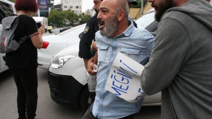 OHAL döneminde yayımlanan KHK ile işten atılan kamu emekçisi Cemal Yıldırım AKP binası önünde oturma eylemi yapmak istedi, gözaltına alındı.