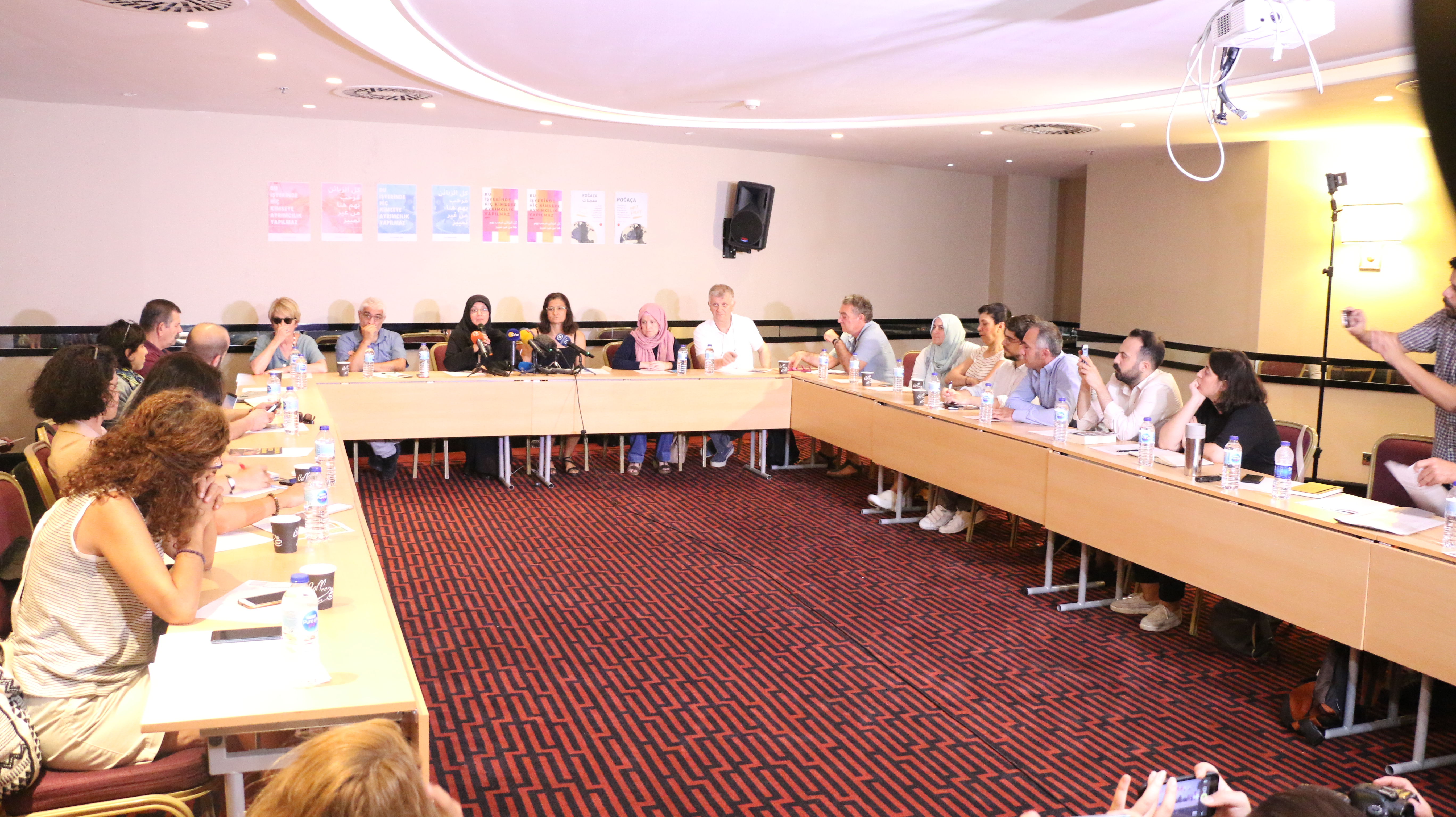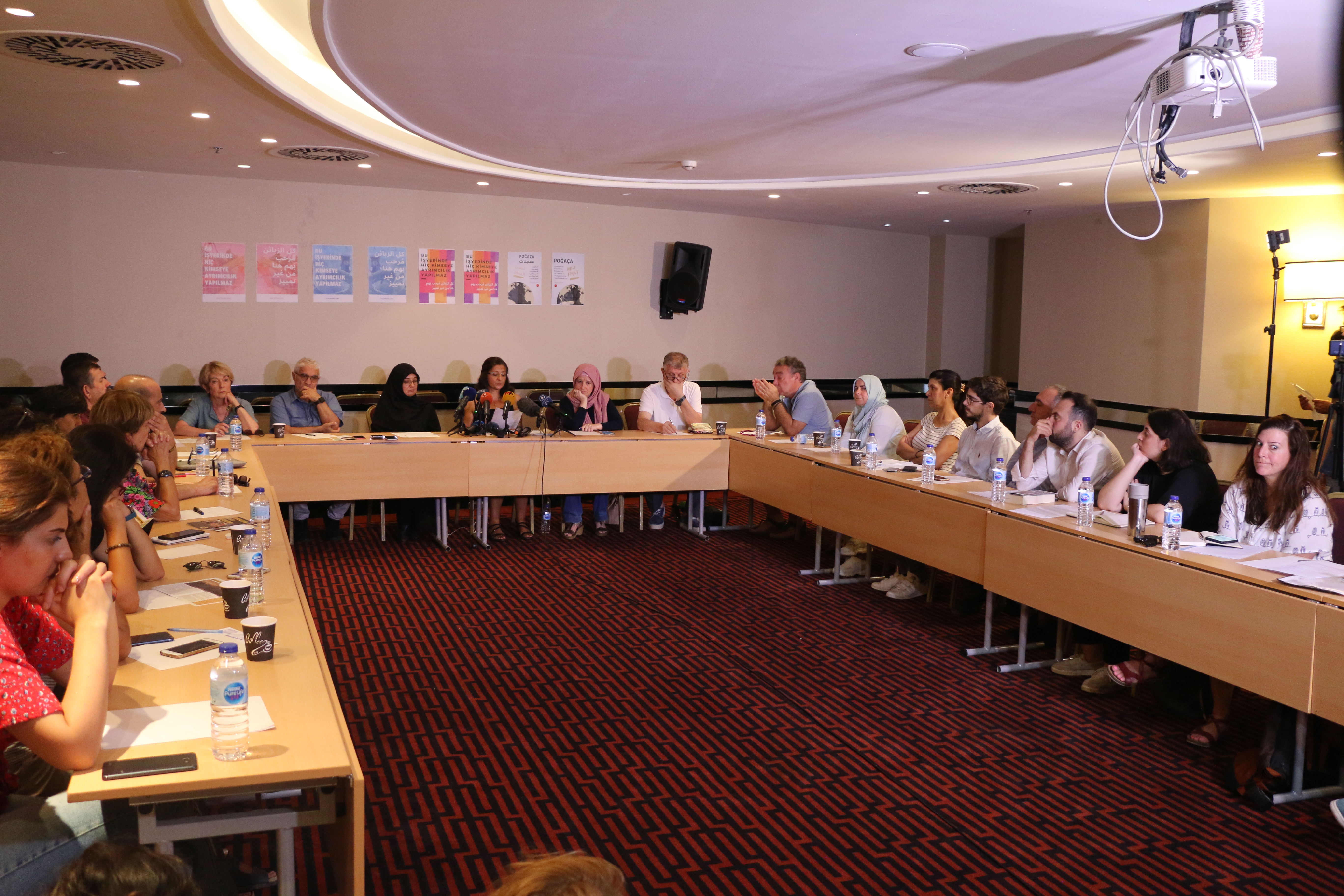 “Mart 2011’de başlayan Suriye savaşı içerisinde yaşayanlar olarak hepimizi insanlık suçları çerçevesinde derinden etkiledi. Özelde Suriyelilere yönelik başlayan ırkçılık ve nefret söylemi içeren kampanya tehlikeli boyutları barındırıyor. Savaştan, ölümden ve zulümden nefes almak, yaşayabilmek için ülkelerinden kaçtılar. Bir insanın evini, yurdunu, komşularını geride bırakarak başka bir ülkede yaşamak zorunda bırakılması yani sığınmacı olması çok basit bir şey değil. Tecavüzden, işkenceden, yargısız infazdan, bombardımandan, kimyasal silahlardan kaçarak geldiler buraya ve diğer ülkelere. Bir taraftan da görüyoruz ki aslında bu kaçış ve sığınmayla beraber sığındıkları ülkelerde göçmenler ciddi bir baskıyla karşı karşıyalar. Biz bir taraftan göçmenlere kucak açan bir ülke olarak gösterilirken son zamanlarda ırkçılığın her gün arttığına şahit oluyoruz. Bu basın toplantısının bir amacı da buna dikkat çekmek. Yeryüzünün hepimize yetecek kadar büyük olduğunu biliyoruz. İstanbul’un da bu potansiyeli kaldıracak kadar geniş olduğunu biliyoruz. Bu problem şimdi yaşanan bir problem değil Avrupa’da Amerika ülkelerinde karşılık bulan ve birbirini etkileyen genel bir politika. Bu da bizi daha fazla endişelendiriyor. Irkçılık insanlık suçudur. Yaşam hakkı söz konusuysa sınırlar konuşulmamalıdır. Ülkemize sığınanlar hangi dilden, dinden ırktan olursa olsun hepsine canı gönülden ‘hoş geldiniz’ demek istiyorum. Beraberiz, hepimiz kardeşiz. Kendilerini güvende hissetmelerini istiyoruz. Sorumluluk sahibi olan başta hükümet olmak üzere tüm siyasi parti temsilcilerine, sivil toplum kuruluşlarına çağrıda bulunmak istiyorum. Çok tehlikeli bir oyun oynanıyor. Bu oyun bugün son bulsun.”