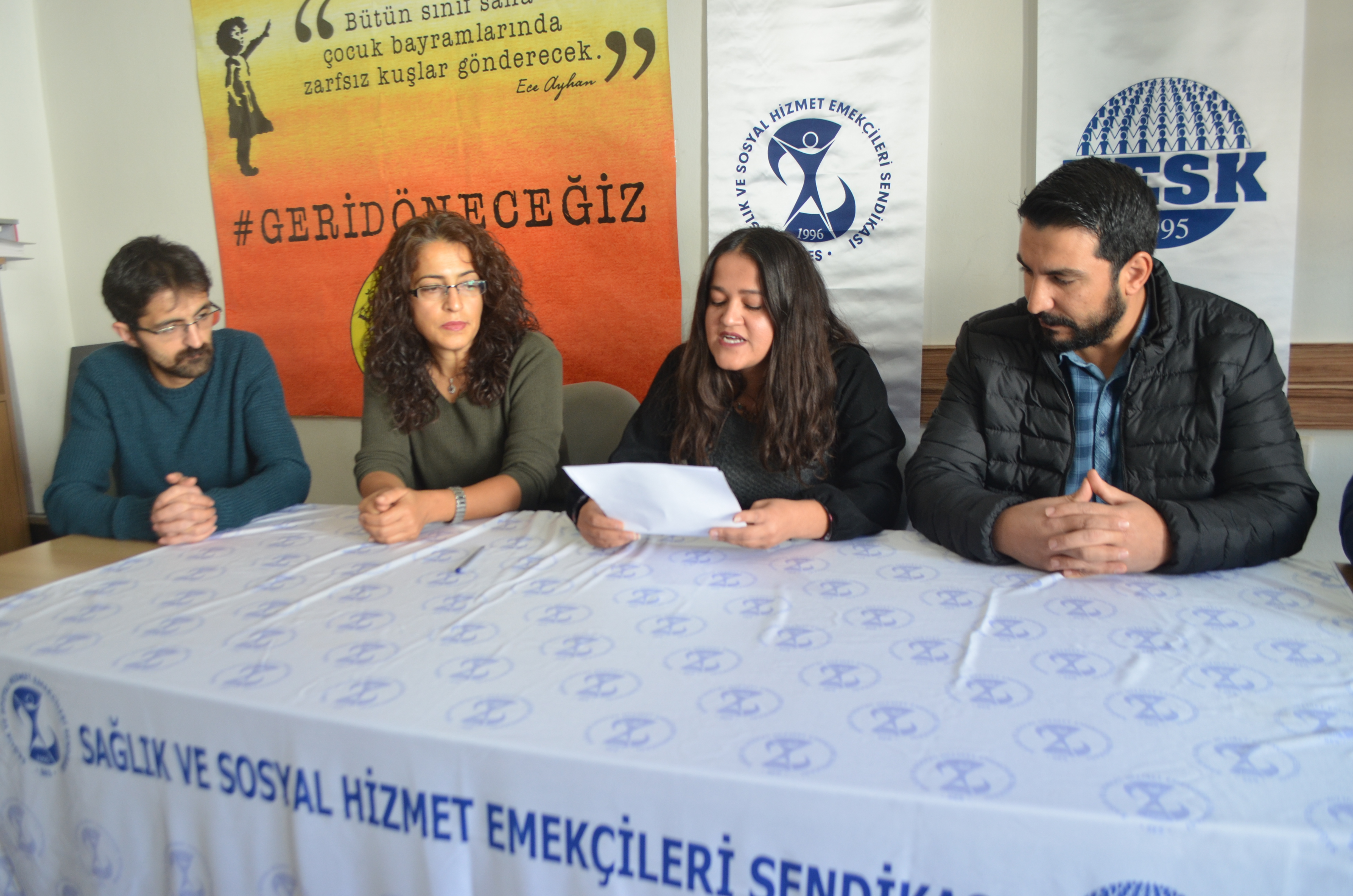 PİRHA – Sağlık ve Sosyal Hizmet Emekçileri Sendikası (SES) Dersim Şubesi, AKP’li milletvekilleri tarafından 30 Ekim 2018 tarihinde TBMM Başkanlığı’na sunulan Sağlık Torba Kanun Teklifi’ne ilişkin basın açıklaması yaptı.