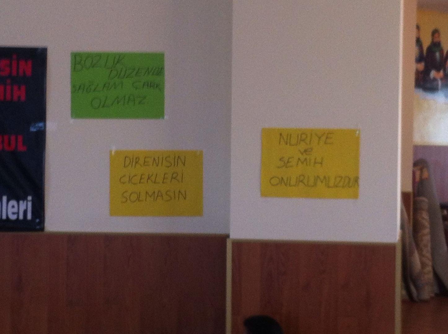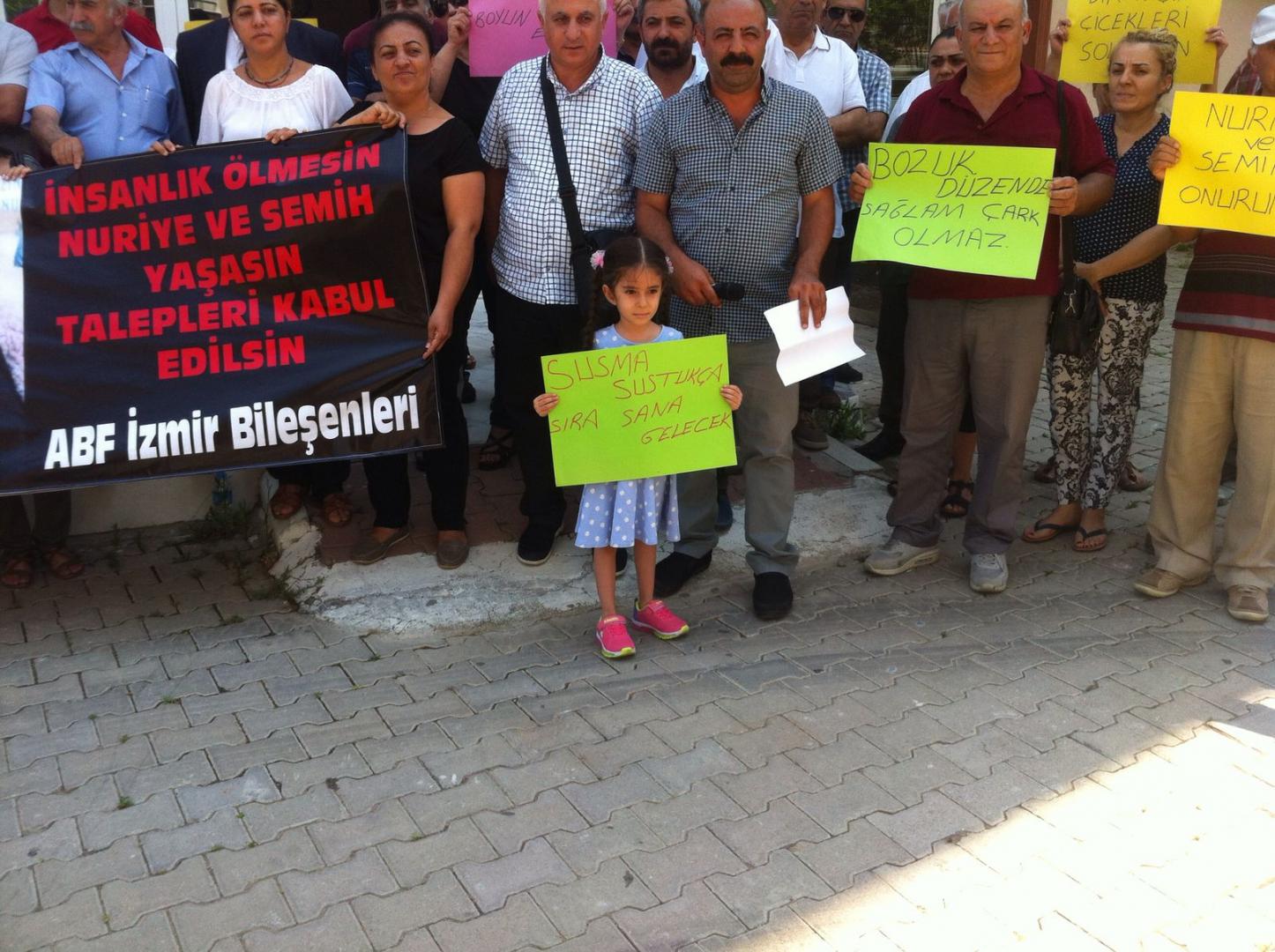 Alevilerin dilinin barış olduğunu, mazlumdan yana zalimin karşısında olduklarını bunun için Gülmen ve Özakça’nın yanında olduklarını belirten Aslan, “Bu mücadelelerinin sesi olabilmek, bizi hiçbir zaman susturamayacaklarına olan inancımızı göstermek için Alevi Bektaşi Federasyonu İzmir bileşenleri olarak 1 günlük açlık grevinde Nuriye ve Semih ile birlikteyiz. Onların sesi olmaya devam ettikçe Nuriye ve Semih kazanacaktır. Biz sustuğumuzda iktidar baskılarını daha da artıracak, biz sustuğumuzda adalet yerini hiçbir zaman bulmayacaktır. Herkes için adalet istiyorlar, herkes için adalet istiyoruz!” ifadelerini kullandı.