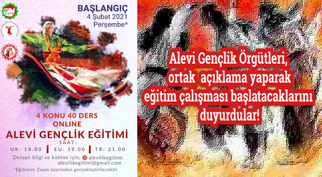 Avrupa Alevi Gençler Birliği (AAGB), Britanya Alevi Gençlik Federasyonu (BAGF) ve Pir Sultan Abdal Kültür Derneği (PSAKD) Gençlik Komisyonu öncülüğünde 4 Şubat 2021 tarihinde, Zoom üzerinden eğitim çalışması başlatılacak.