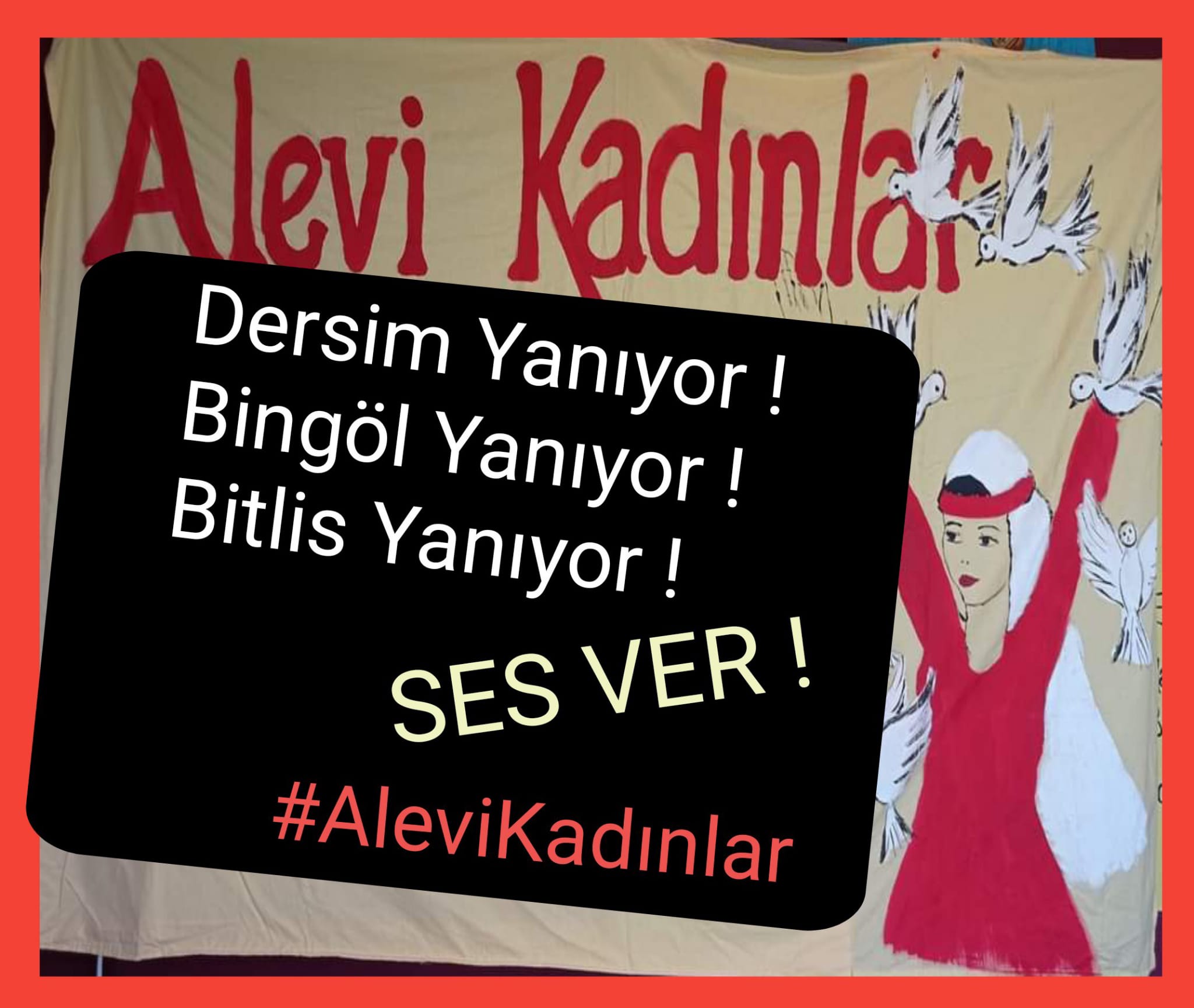 Alevi Kadınlar olarak 13 gündür yanan ağaç değil her birimizin yüreği, canı… Yanan biziz, yakan devlet. Ve yakmaya devam ediyor acımadan onca börtü böcek, onca canla birlikte. Yanan ağaç değil, yanan geçmişimiz ve geleceğimizdir, yanan biziz. Yanan coğrafyamız, yanan Xızır mekânı, yanan ziyaretgâhlarımızdır. Yanan tarihimizdir tıpkı 1937 gibi. Tüketilmek istenen biziz.