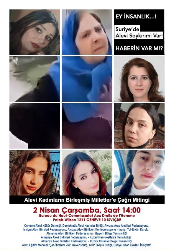 Birleşmiş Milletler’i sorumluluk almaya çağıran Alevi kadınlar, 2 Nisan Çarşamba, saat 14.00’te Cenevre’de Birleşmiş Milletler önünde miting yapılacağını duyurdu.