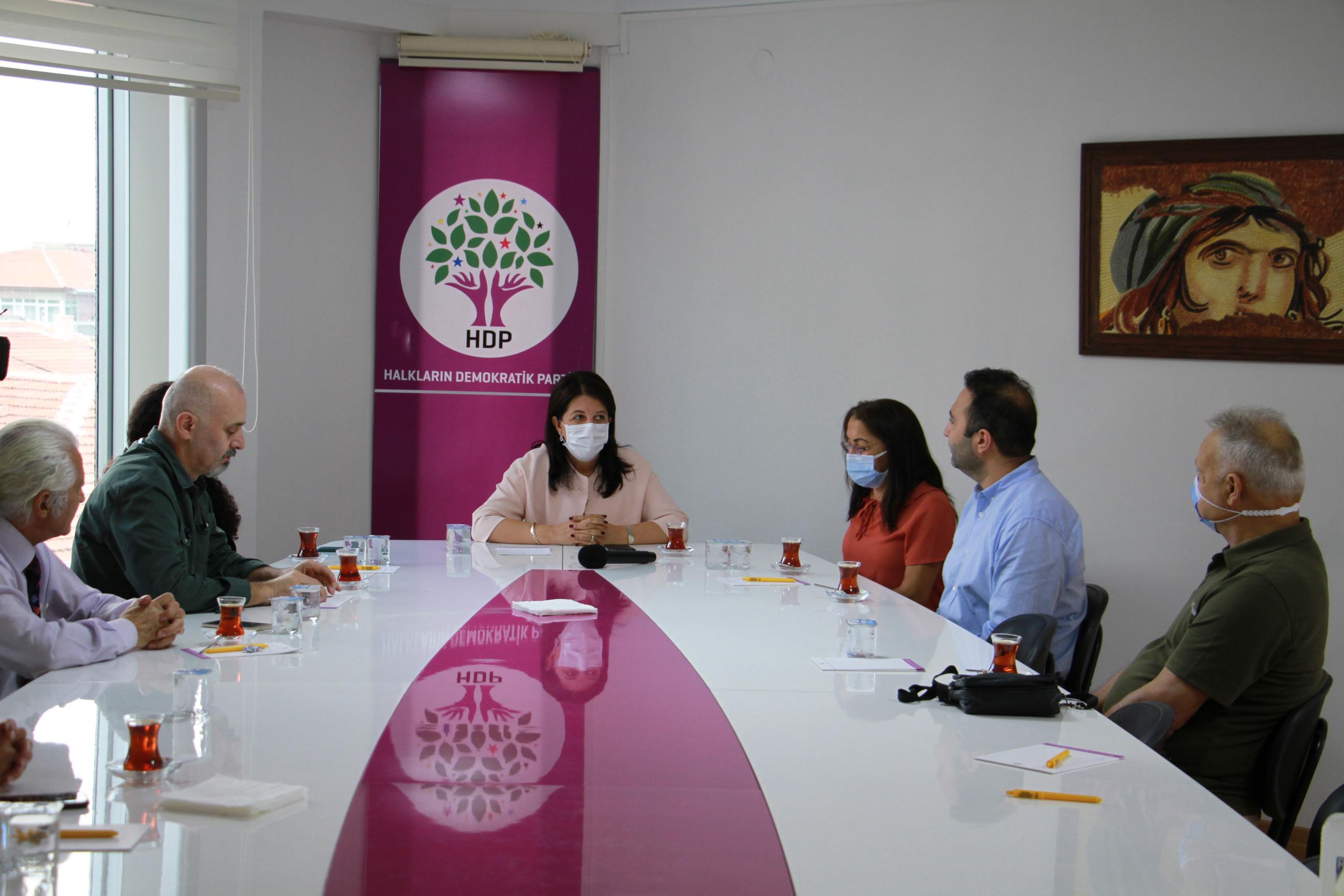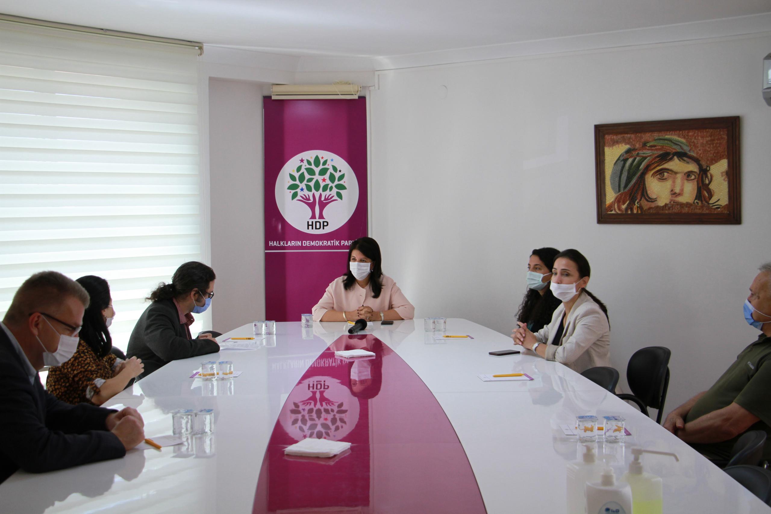Halkların Demokratik Partisi’ne (HDP) yönelik yapılan gözaltı operasyonuna ilişkin dayanışma ziyaretleri sürüyor. HDP Genel Merkezi’ni bugün de sivil toplum örgütleri ve siyasi parti temsilcileri ziyaret etti. Pir Sultan Abdal Kültür Derneği, Alevi Bektaşi Federasyonu, DSİP, Sosyal Demokrat Halk Partisi (SHP) eski Genel Başkanı ve eski bakan Murat Karayalçın HDP Genel Merkezi’ni ziyaret etti. Görüşmelere HDP Eş Genel Başkanları Pervin Buldan ve Mithat Sancar’ın yanı sıra Eş Genel Başkan Yardımcıları Tülay Hatimoğlulları, Tuncer Bakırhan, İlknur Birol, Parti Sözcüsü Ebru Günay ve MYK üyesi Hüseyin Taka da katıldı.