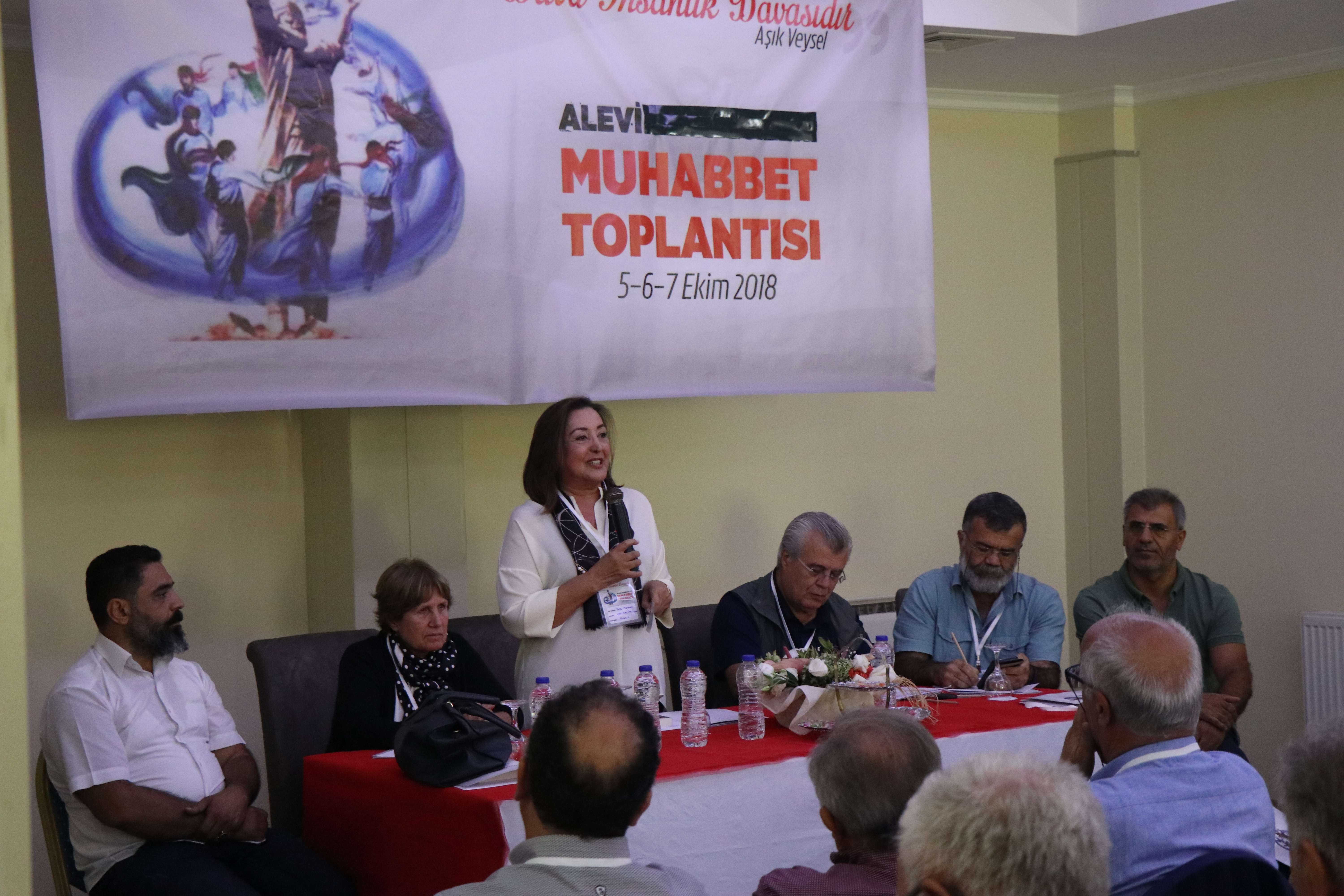 “Bir Alevi anne babanın biçimlendirdiği bir kadın olarak emek mücadelesi verdim. Çatışmacı bir dil kullanmam ama ödün vermem. Sanat, bizim çok geride bıraktığımız, bireysel başarılara mal ettiğimiz bir alan. Yaşar Kemal bana Binboğalar kitabını Alevi dedelerinin yazdırdığını söyledi. Alevi inancı kadar kadına eşitlikçi bakan, değer veren bir inanç görmedim. Kırklar ceminde 17 kadının olması örnektir. Yaşar Kemal’in sözü benim kutup yıldızım oldu. Dedelerle sözlü tarih çalışması yapılması önerisi yaptım. Aleviler olarak kendimizi sanatla anlatmalıyız. Kadının türküsünde biz Alevi kadınını dünya kadınları ile anlattık. Biz Kadıncık Ana’ların devamını günümüzde yaşatmak zorundayız. Kadınlar değişim ve dönüşümün en dinamik rengi. Siyasette sanatın etkisi sıfır. Ama iktidar bu değerleri alıp fabrika ayarlarında kullanıyor. Bizim ozanlarımız müzikte çok büyük. Bu büyüklüğe sahip olmamıza rağmen Hallac-ı Mansur’u bir İngiliz yazıyor. Hala Maraş ve Sivas’ın filmi var mı? En kalıcı olan sanattır. Alevi örgütleri sanata sarılmalı. Kendi değerlerimize değer vermiyoruz. Kadınlar birbirine el verir, gönül verir okyanusa akarlar. Alevi örgütleri bu sanatçıları, ressamları bir türlü bir araya getiremiyorlar. Dedelerimizle birlikte sözlü tarihe bir an önce hız vermeliyiz. Bu inanç büyük baskı, zulüm altında birçok deyiş ve duaz-ı imamı buraya getirdi. Benlik duvarımızı sanat ile yıkabiliriz.”