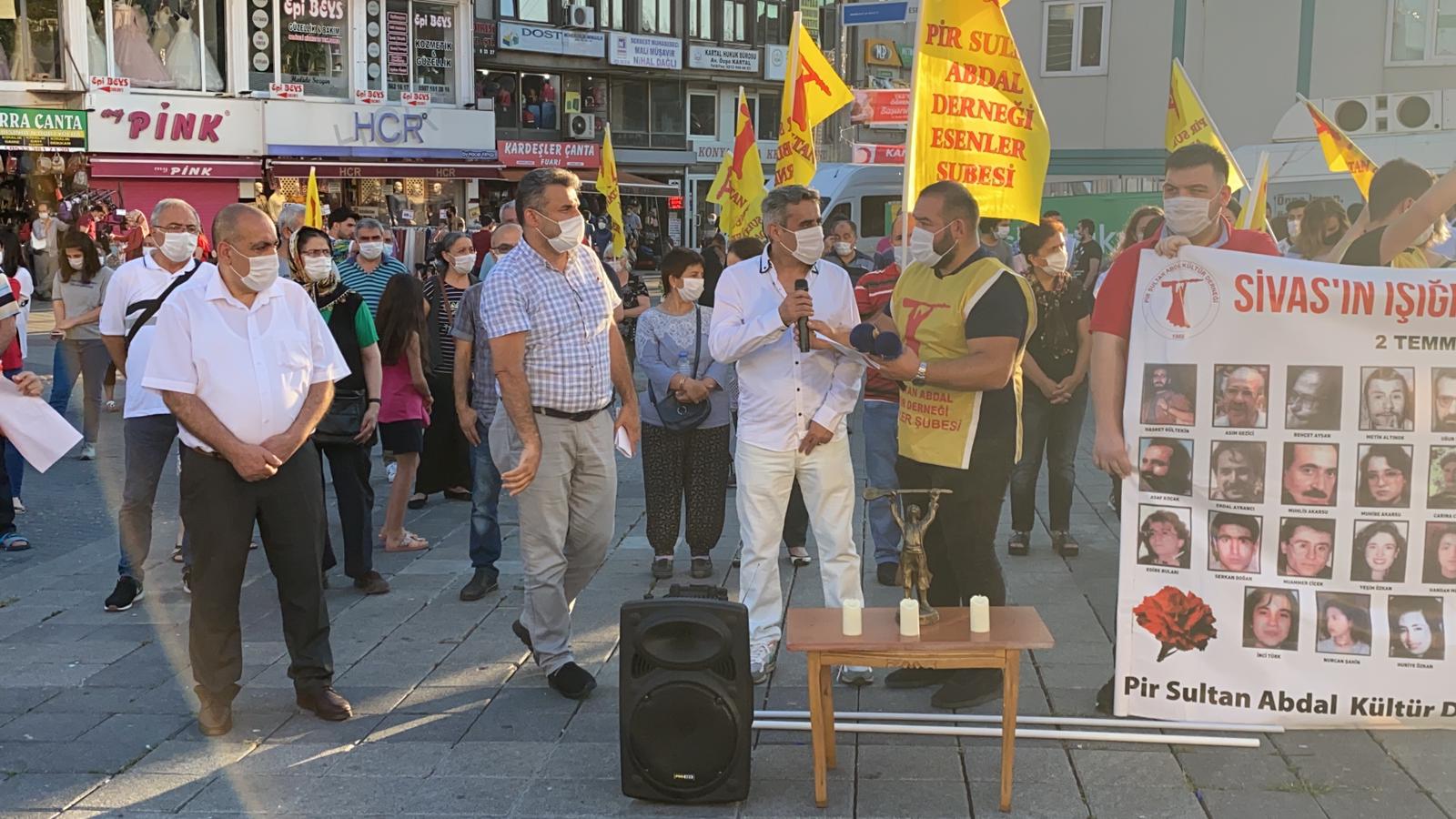 Pir Sultan Abdal Kültür Derneği Esenler Şubesi öncülüğünde Hacı Bektaş Veli Kültür ve Tanıtma Derneği ve Anadolu Canlar Cemevi Derneği, Esenler Dörtyol Meydanı’nda 1993’de Sivas’ta katledilen 33 canı andılar.