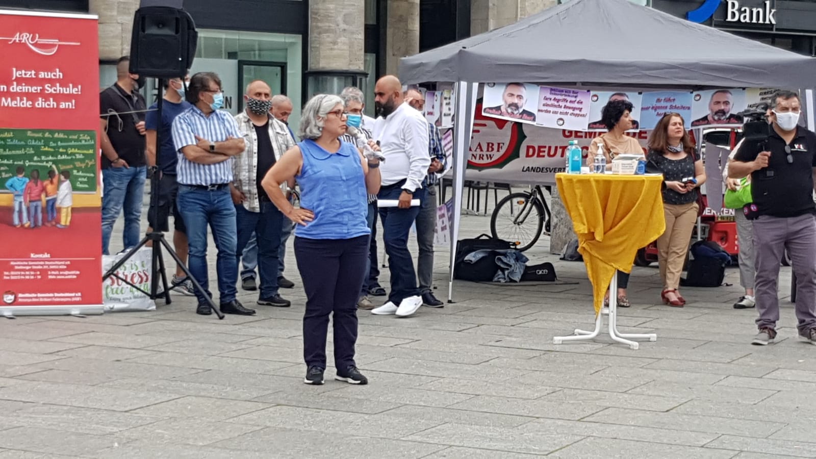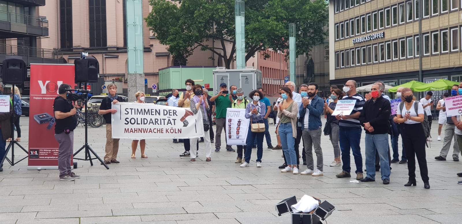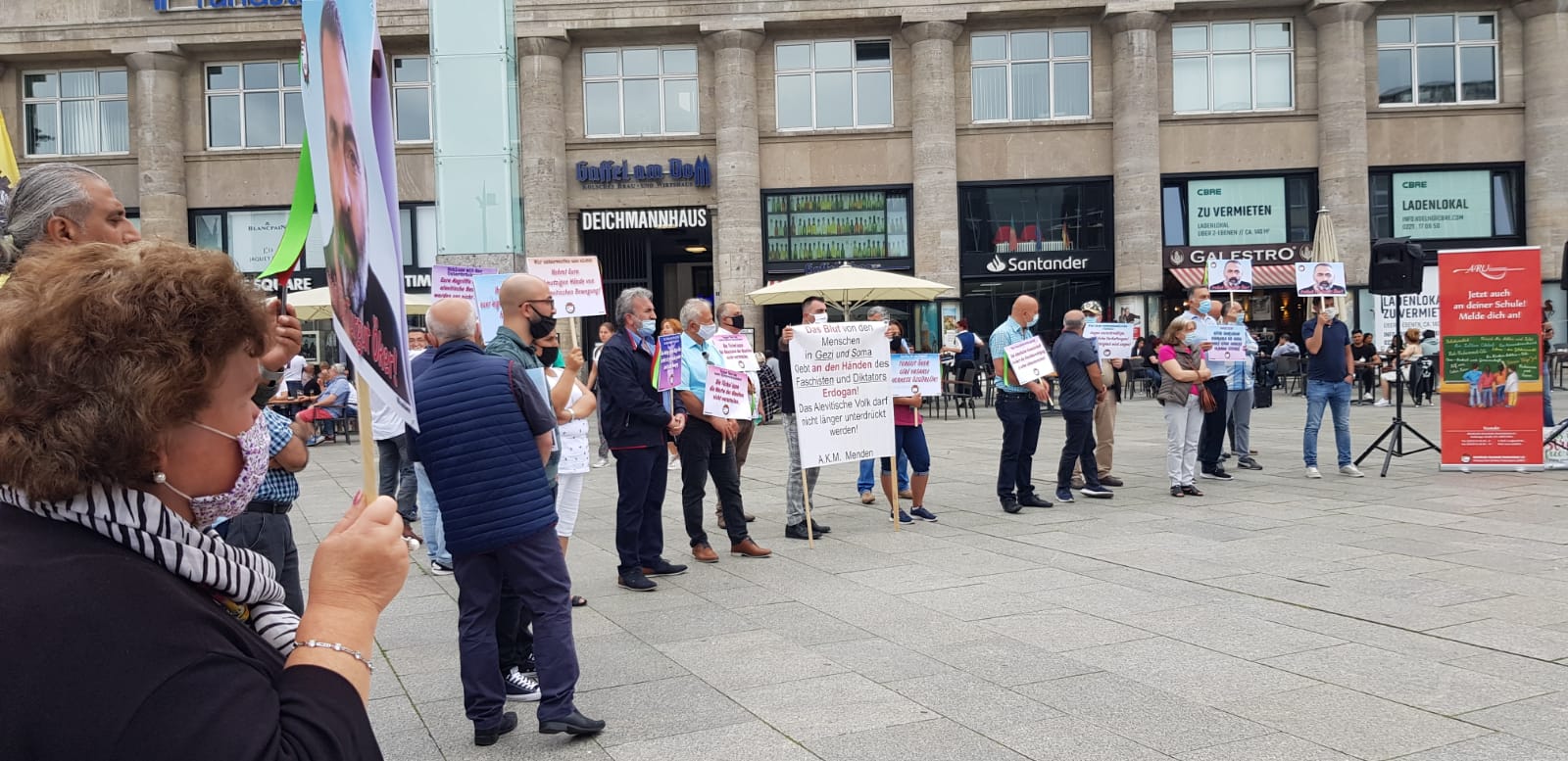 Almanya’nın Köln kentinde bir araya gelen Aleviler, Turgüt Öker’in dövizlerini taşınarak, ‘Susma sustukça sıra sana gelecek’ sloganı atıldı.