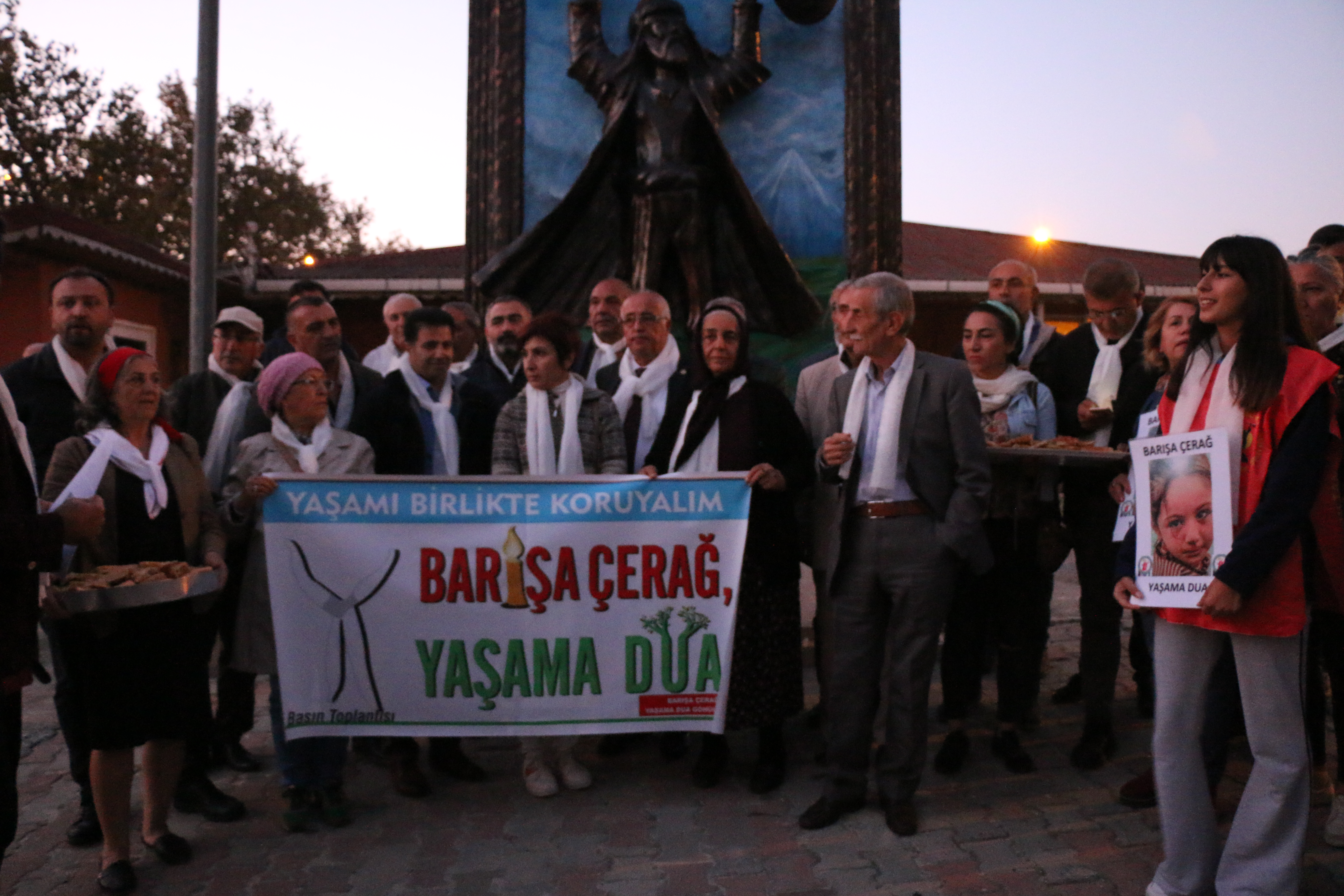 Barış umuduyla cemevinde, evinizde bir mum yakın geleneğimiz olan Perşembe günleri ve boynunuzda beyaz bir fular, atkı, tülbent elinizde kağıda yazılmış dualı resminizle birlikte #BarısaCeragYasamaDua Hastag’i ile paylaşın. Bu perşembe ve her perşembe.