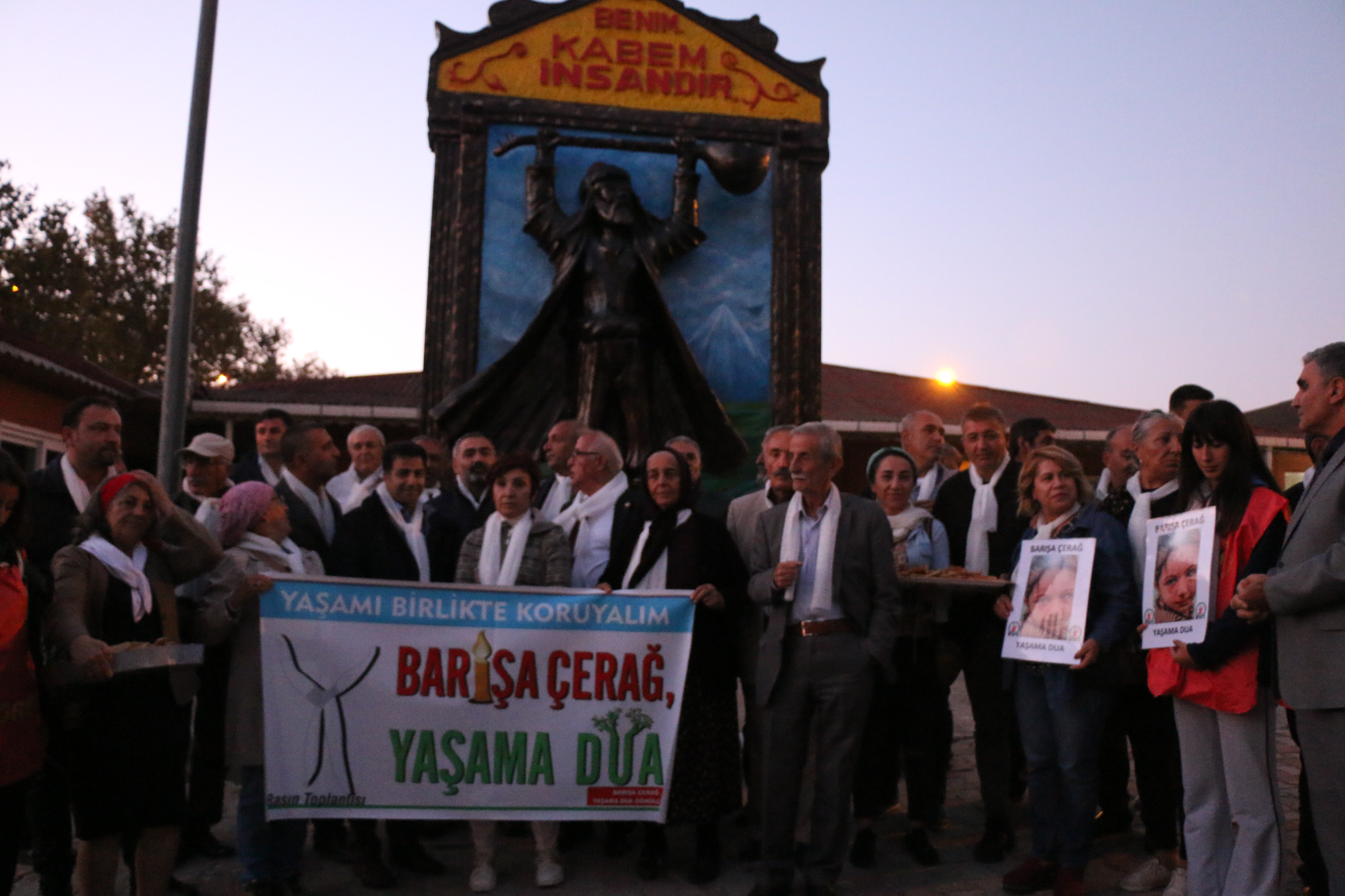 Bu gayretimizi Rab, Allah, Hakk, Tanrı, Evren görecektir. Hakikat türlü renktedir, birlik görünür olur. Görünür olun barışı başaralım. Savaş çılgınlığına karşı karınca misali tarafımızın sevgi ve birlikte yaşam olduğunun gayretini gösterelim. Tüm inanç, inançsız ve renklerden insanlar bizlere yardım edin duanızla, dileğinizle, iyi niyetinizle dünyanın bizlere ihtiyacı var.”