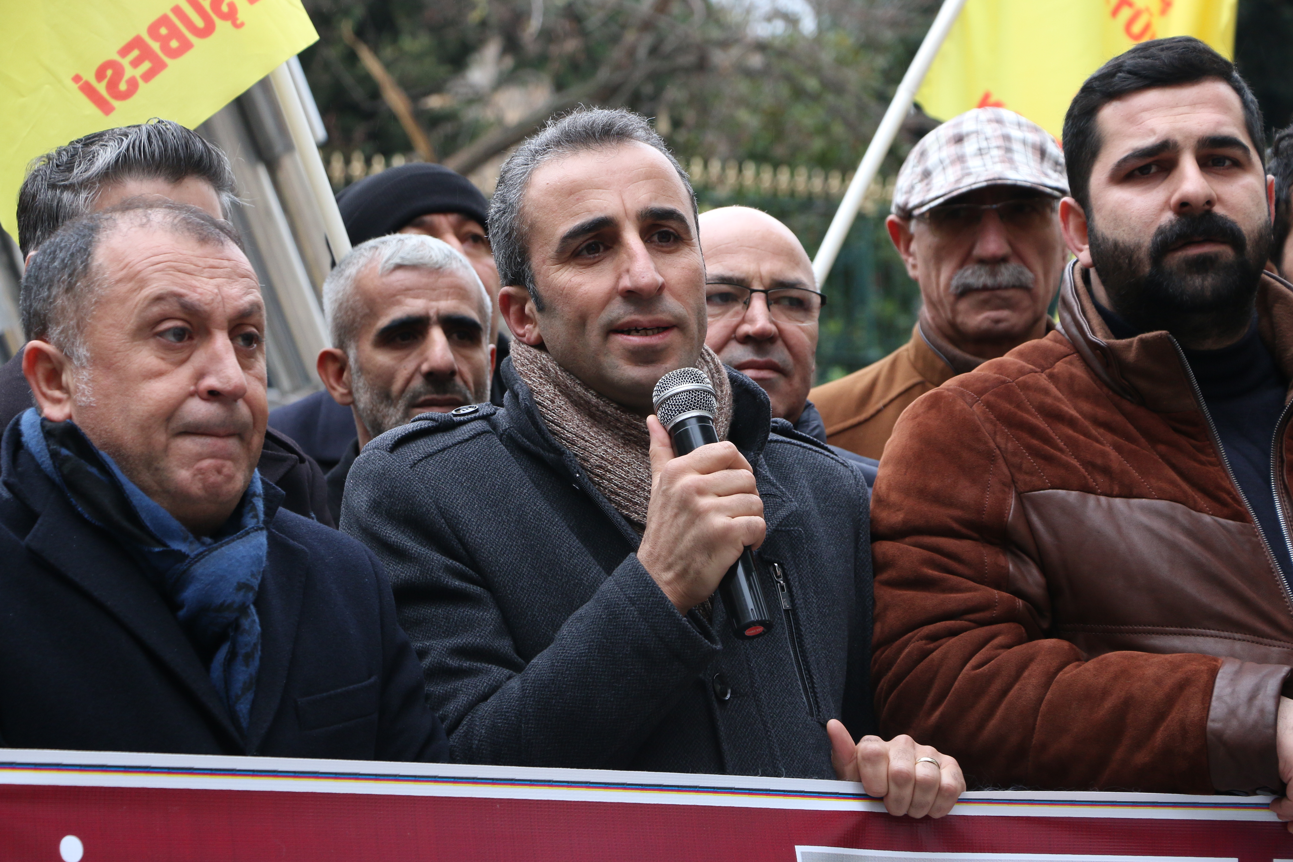 Veli Büyükşahin, Veli Haydar Güleç ve Kemal Demir başta olmak üzere gözaltına alınan tüm canların serbest bırakılmasını talep eden Yıldız sözlerini mücadele vurgusu ile tamamladı: