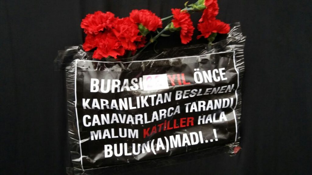 Gülbangın ardından açıklamayı katliamda yaşamını yitiren Zeynep Poyraz’ın ablası Kibar Poyraz yaptı. Poyraz, “22 yıldır acı çeken anne babalar olarak hangi sebepten dolayı böylesi unutulmaz bir acıyı bize yaşattılar anlamış değilim. Devletin kontrgerilla çeteleri kahvehanelerde oturan insanların üzerine ateş eden ve insanları sokağa dökenleri yargılamadığı gibi ölü ve yaralılarına sahip çıkan halka ise devlet güçleri tarafından saldırılmıştır” dedi.