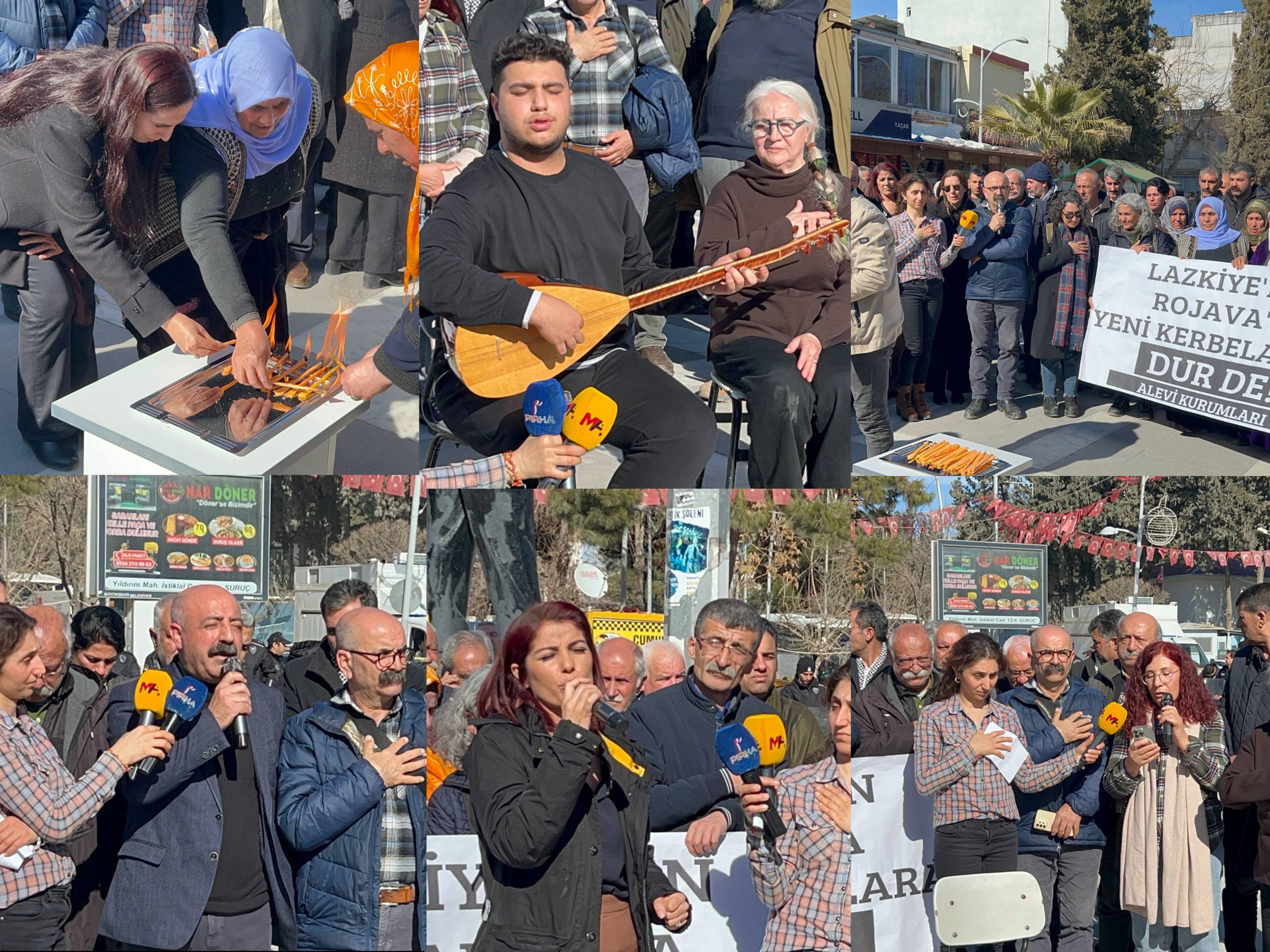 ABF Genel Başkanı Mustafa Aslan da, Suriye topraklarında tüm halklar ve inançlara uygulanan bir zulümün olduğunu belirterek, “Suriye’de Aleviler, Kürtler, Dürziler, Süryaniler, Hristiyanlar tehdit altında. Selefi çeteleri gibi düşünmeyenlerin tamamı saykırım altında. Egemen güçlerin donattığı, eğittiği katiller Suriye halklarını, inanç topluluklarını katlediyor. Bu topraklar tek kimlikli, dilli değil. Bu topraklarda kimliğimiz, inancımız inkar edildi. Bu vatanın her karışında eşit yaşamak zorundayız. Hükümetten talebimiz; Alevilere soykırım yaşandığı günden bu yana isteğimiz sınır kapılarının açılmasıdır. Bir birmizin Hızır’ı olalım. Kerbela’da Ali Ekber nasıl katledildiyse bugün Kürt, Alevi, Dürzi çocukta aynı şekilde katlediliyor. Kerbela’da Zeynep Ana nasıl zulüm gördüyse, bugün Suriye’de kadınlar aynı zulmü yaşıyor. Buna karşı bir olmalıyız” şeklinde ifade etti.