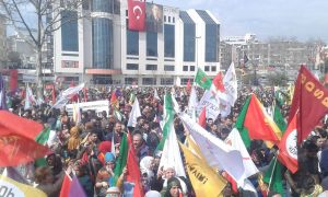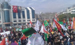 İstanbul Newroz kutlamaları “Mutlaka kazanacağız” şiarıyla Kartal Meydanı’nda gerçekleşiyor. Kutlamaların yapılacağı alana gelen halk polis engellemesiyle karşılaştı. 6 kişi slogan attığı için gözaltına alındı. Gaziosmanpaşa ile Arnavutköy ilçelerinden gelecek otobüslerin polis tarafından engellendiği bildirildi. Bu arada Demokratik Alevi Dernekleri Newroz’a kendi pankartlarıyla katıldı.