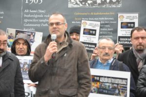 Eylemde sık sık ‘Alevilerin sesi susturulamaz’ sloganları atıldı. Ali Çiftçi’den sonra bu hafta eyleme katılan Alevi Bektaşi Federasyonu Genel Başkan Yardımcısı Bülent Kaya’ya söz verildi.