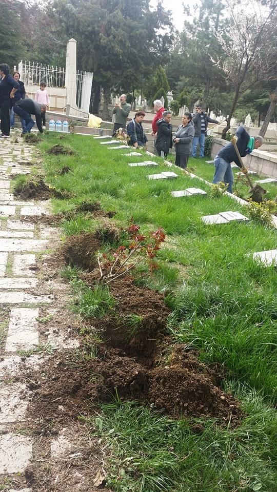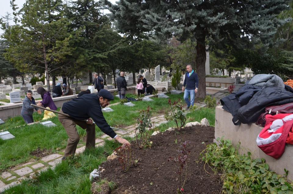 Ziyarette, mezarlara güller dikildi, temizlik yapıldı.