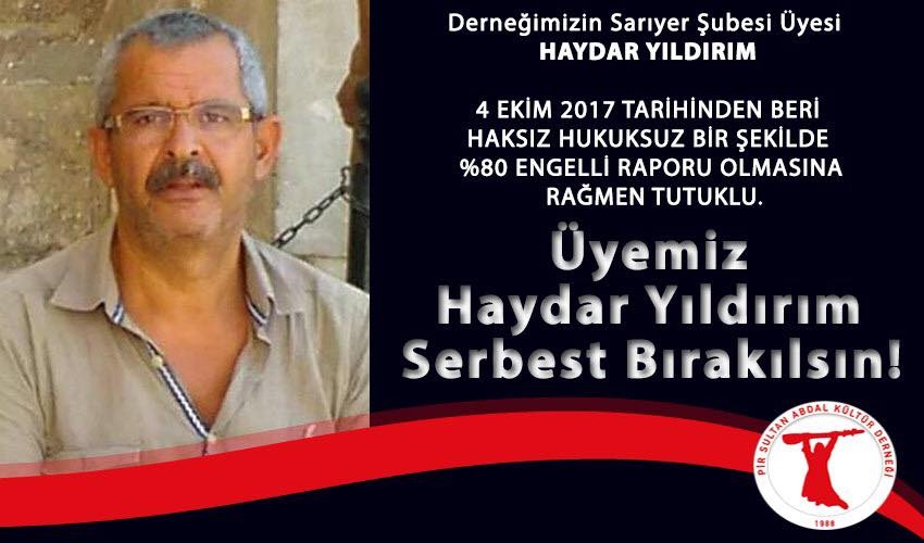 Pir Sultan Abdal Kültür Derneği, yaptığı açıklamada, Haydar Yıldırım’a dönük eziyete ve keyfi uygulamalara derhal son verilmesi gerektiğini vurguladı.