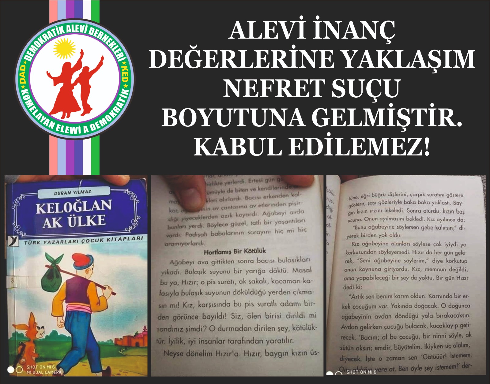 Alevilerde kutsal kabul edilen Hızır’ın “Keloğlan Ak Ülke” adlı masal kitabında tecavüzcü olarak gösterilmesine tepkiler gelmeye devam ediyor. 1981 yılında bu yana okutulan ve Yuva yayınlarından çıkan kitaba bir tepki de Demokratik Alevi Derneği DAD’dan geldi.