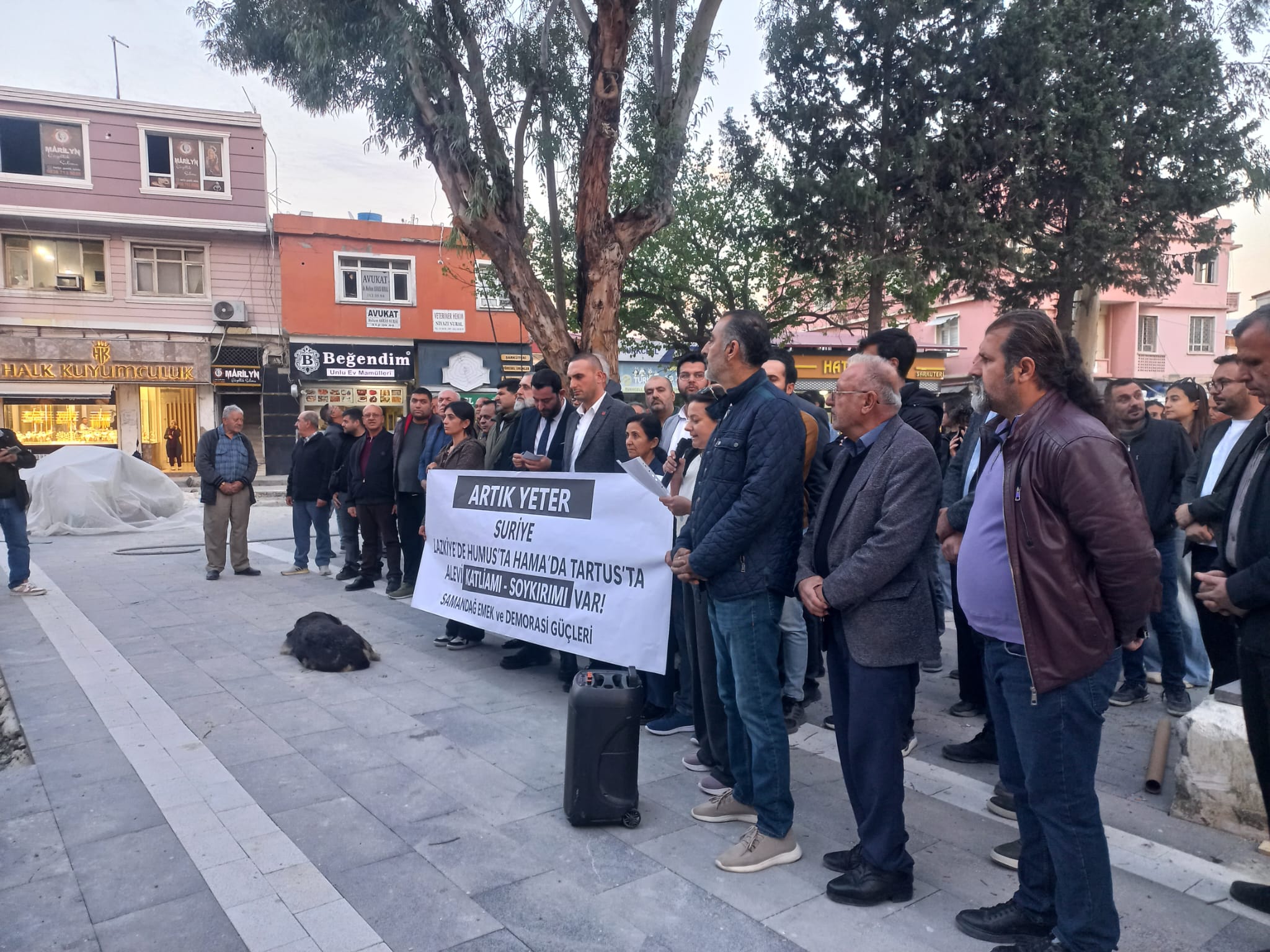 Kuzey ve Doğu Suriye Yönetimi’ne çağrı yapan Samandağ Emek ve Demokrasi Güçleri, “Katliamcı güçlere karşı Alevi halkına sahip çıkın, onları yalnız bırakmayın” dedi. Açıklamaya şöyle devam edildi: