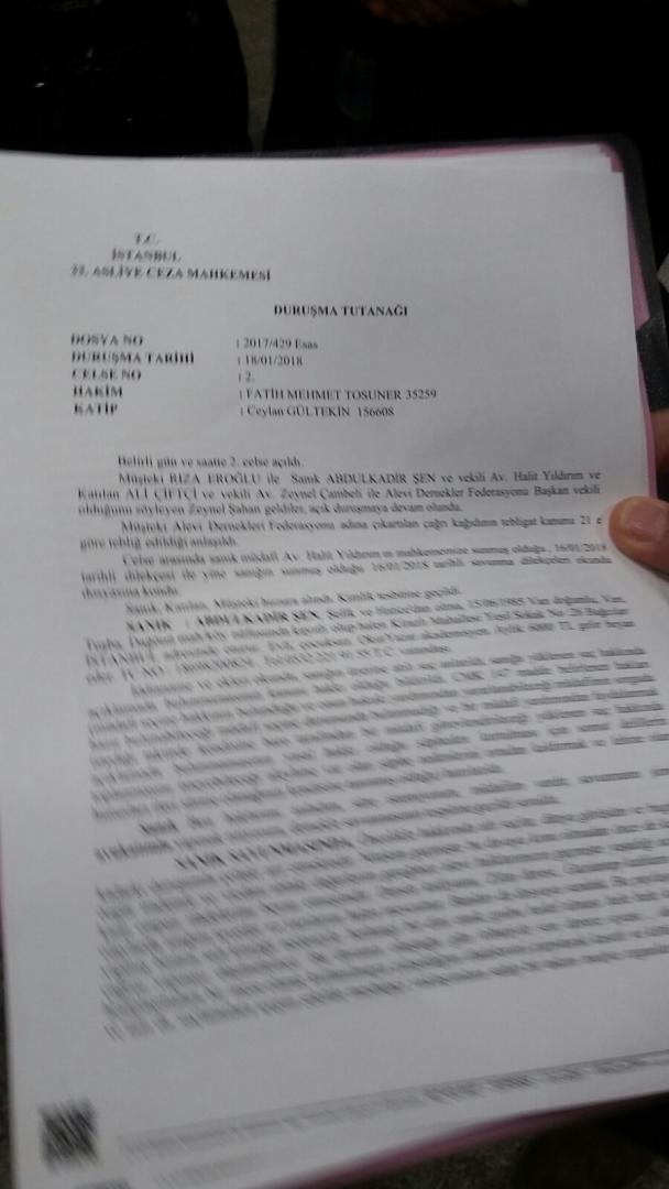PİRHA- Alevilere ilişkin nefret ve tehdit içeren söylemlerde bulunan akademisyen Abdülkadir Şen’in Alevi kurumlarının suç duyurusu üzerine açılan mahkemesinin ikinci duruşması bugün Çağlayan 33.Asliye Ceza Mahkeme’sinde görüldü. Sanık duruşmaya gelirken, mahkeme duruşmayı 8 Haziran’a ertelendi. Pir Zeynel Şahan, Hazirandaki duruşmaya Alevilerin yoğun katılmasını istedi.