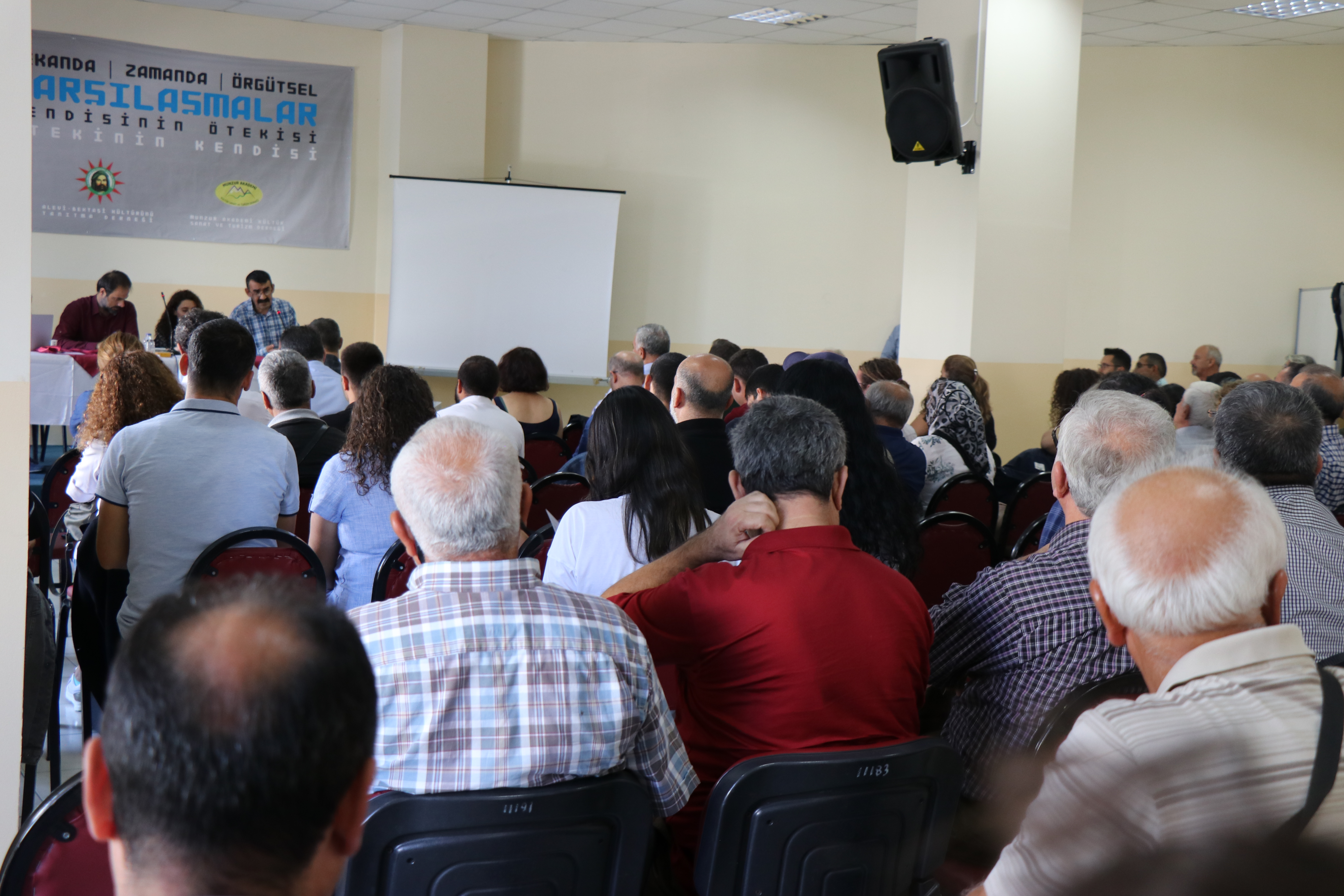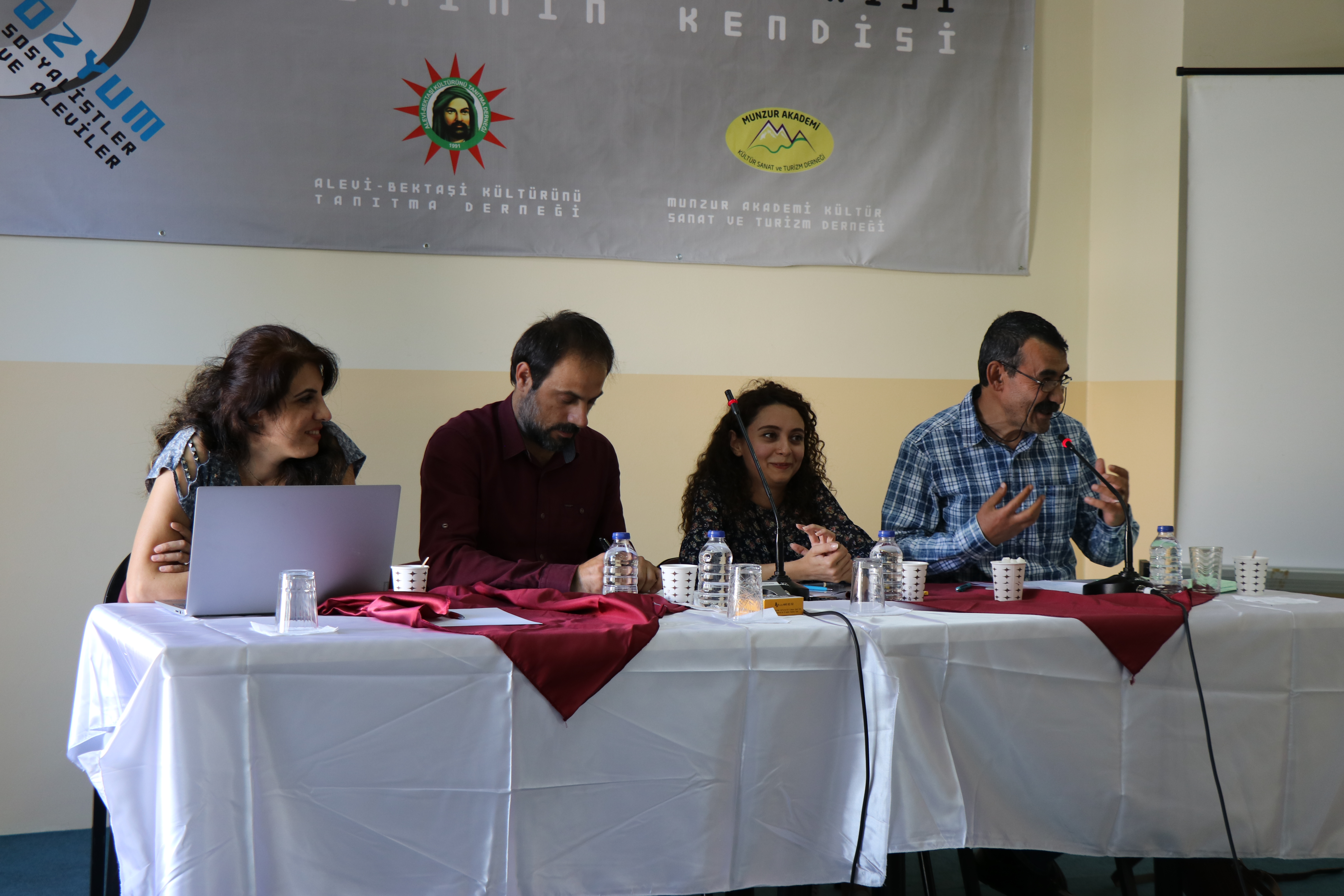 Arkasından söz alan Prof. Dr. Ayhan Yalçınkaya ise Alevilik ve sosyalistler arasında bir muhteva ortaklığı olduğunu ifade ederek “Alevilerin rıza şehrinin hiç bir yanı yok. Bunu önce platon yazmıştı. Aleviliğin değerlerinin özgün olmadığını iddia etmiyoruz. Kadim köklere sahip. Sürekli kendini beslemeye çalışan bir inanç. Alevilik diğer dinler gibi bir şeyin çocuğudur. Demokratik kandaş kardeşliğin bir çocuğudur. Alevilik ile sosyalizm aynı olgunun farklı yüzlerinden ibarettir. Bu ikisini birbirine kırdırıyoruz” diye konuştu.