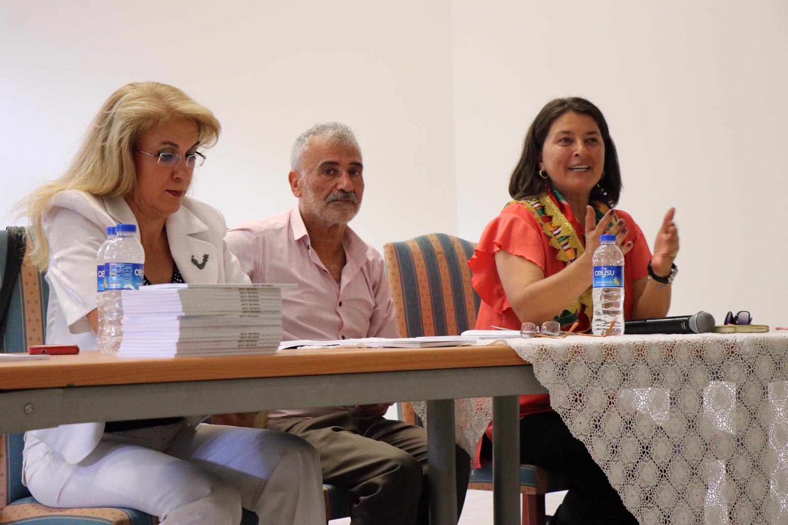 İlk söz alan panelist Halk Kültürü araştırmacısı Öznur Tanal, Abdal Musa’da Alevi kadınların ilk defa kendini anlatma şansını bulduğunun altını çizerek, “İlk defa kendi topraklarımızda söz hakkı alıyoruz. Kadın dünya nüfusunun yarısını oluşturan diğerini de doğrudandır. Kutsal olanladır. 600 yıllık erkek ememenliğinde, öncesi ise kadın egemenliği yaşandı. İlk çiftçiler kadınlar olmuştu. Ana tanrıça kültü bu topraklarla doğdu. Kadıncık ana bir baciyan rumdur. Alevilik örgütselliği içinde yer almıştır. Alevi kadın aklından, ruhundan doğurandır. Hakka yaklaşır gibi herşeye yaklaşıyorlar. Aslan’ın erkeği de dişisi de aslandır. Ana tanrıça kültü Anadolu Aleviliğinde devam etmiştir. İnanca saldırılırken de Alevi kadınlara iftira attılar. Onur kapanmaktan değil bilinçle korunur. İbadetlerde de erkekle ceme girer. Kırklar meclisinden 17’si kadındır. Dilimiz ana dilimizdir. Kadın gücünden korkuluyor. Egemenliklerinin yerle bir edilmesinden korkuyorlar” diye konuştu.