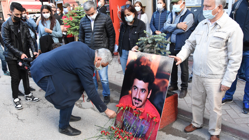 Basın açıklamasından sonra kitle, Ali İsmail Korkmaz’ın fotoğrafına karanfil bıraktı.